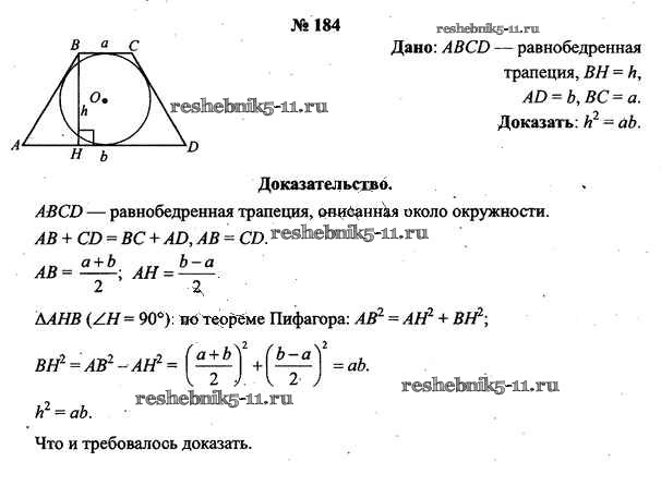 Готовая домашняя работа с ответами по Геометрии за 9 класс Шлыков Учебник Народная асвета 2012 - Задачи 184