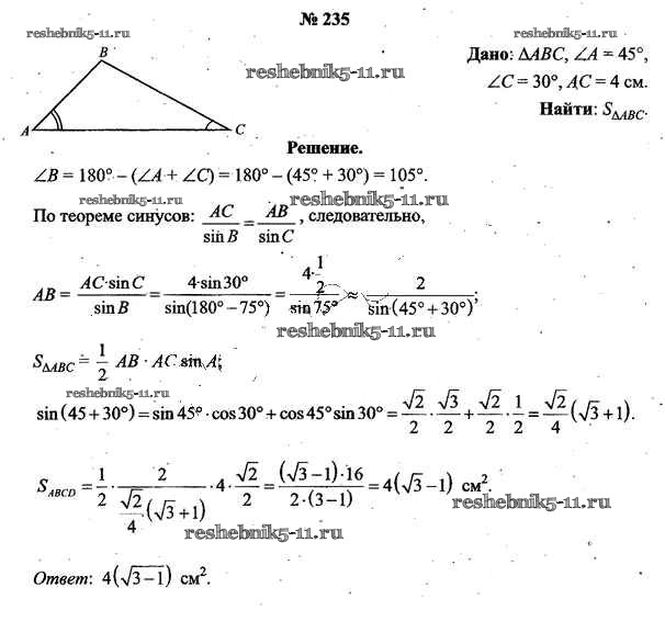 Готовая домашняя работа с ответами по Геометрии за 9 класс Шлыков Учебник Народная асвета 2012 - Задачи 235