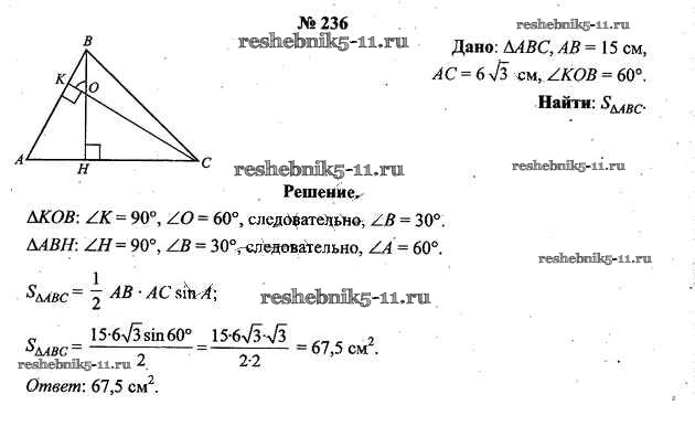 Готовая домашняя работа с ответами по Геометрии за 9 класс Шлыков Учебник Народная асвета 2012 - Задачи 236