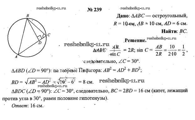 Готовая домашняя работа с ответами по Геометрии за 9 класс Шлыков Учебник Народная асвета 2012 - Задачи 239