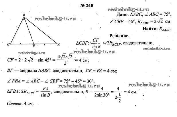 Готовая домашняя работа с ответами по Геометрии за 9 класс Шлыков Учебник Народная асвета 2012 - Задачи 240