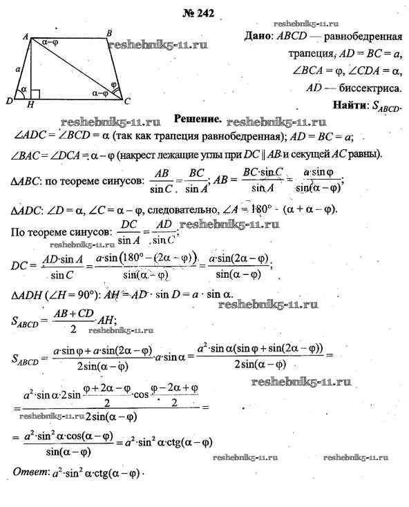 Готовая домашняя работа с ответами по Геометрии за 9 класс Шлыков Учебник Народная асвета 2012 - Задачи 242