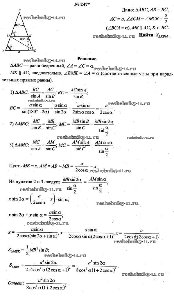 Готовая домашняя работа с ответами по Геометрии за 9 класс Шлыков Учебник Народная асвета 2012 - Задачи 247