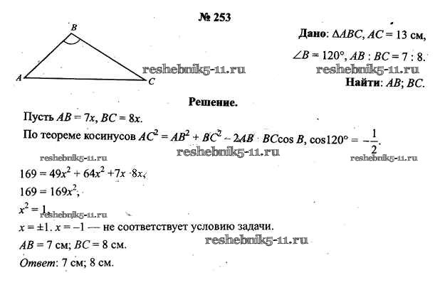 Готовая домашняя работа с ответами по Геометрии за 9 класс Шлыков Учебник Народная асвета 2012 - Задачи 253