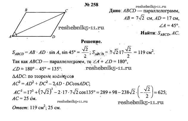 Готовая домашняя работа с ответами по Геометрии за 9 класс Шлыков Учебник Народная асвета 2012 - Задачи 258