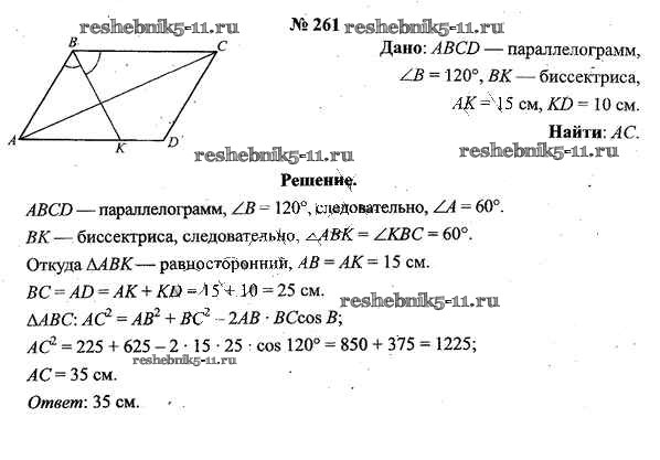Готовая домашняя работа с ответами по Геометрии за 9 класс Шлыков Учебник Народная асвета 2012 - Задачи 261