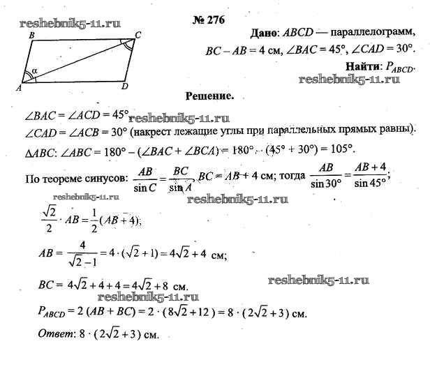 Готовая домашняя работа с ответами по Геометрии за 9 класс Шлыков Учебник Народная асвета 2012 - Задачи 276