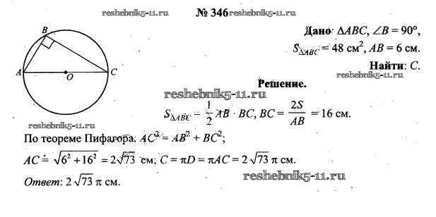 Готовая домашняя работа с ответами по Геометрии за 9 класс Шлыков Учебник Народная асвета 2012 - Задачи 346