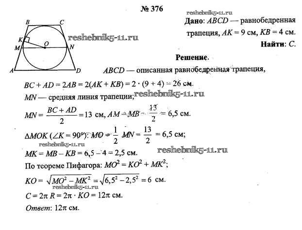 Геометрия за 9 класс Шлыков Учебник Народная асвета задача 376