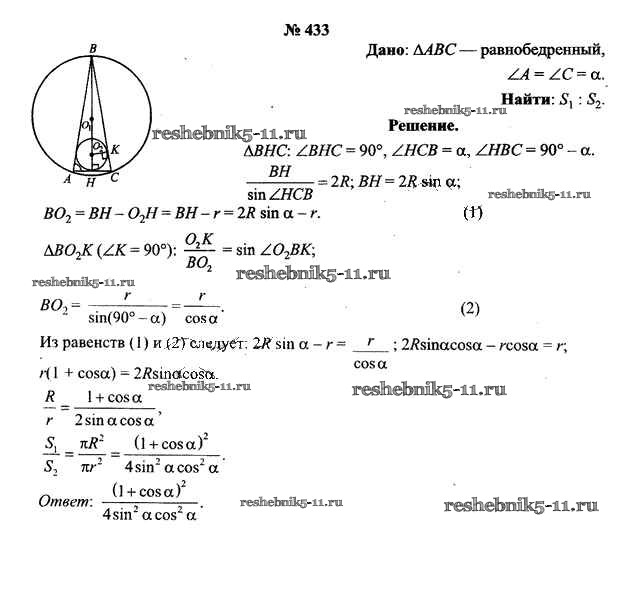 Готовая домашняя работа с ответами по Геометрии за 9 класс Шлыков Учебник Народная асвета 2012 - Задачи 433