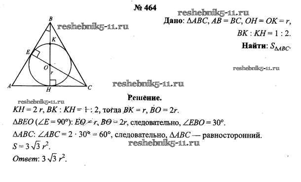 Готовая домашняя работа с ответами по Геометрии за 9 класс Шлыков Учебник Народная асвета 2012 - Задачи 464