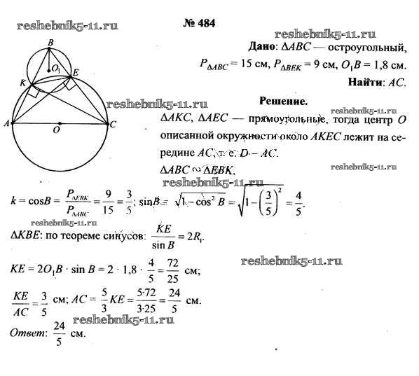 Готовая домашняя работа с ответами по Геометрии за 9 класс Шлыков Учебник Народная асвета 2012 - Задачи 484