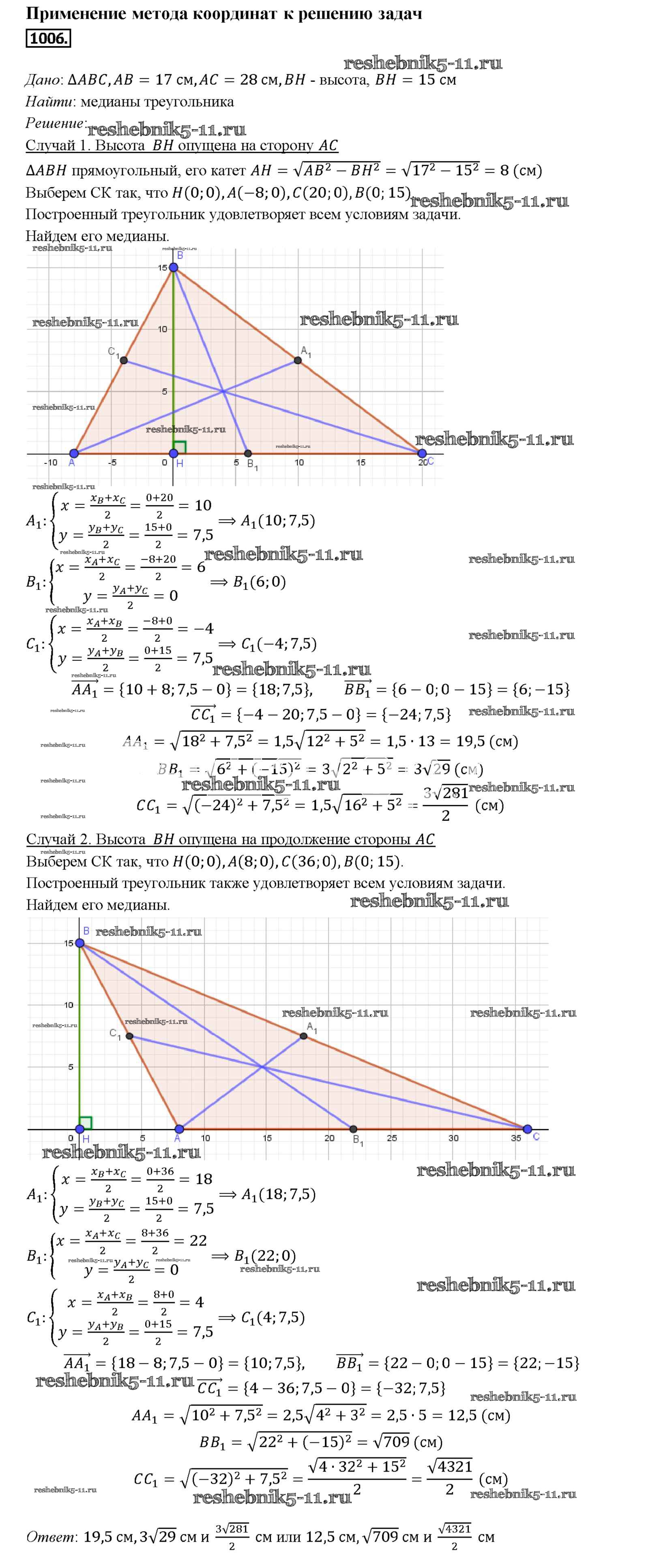 Готовая домашняя работа с ответами по Геометрии за 7, 8, 9 класс Атанасян, Бутузов, Кадомцев Учебник Просвещение 2010 ФГОС - Задачи 1006