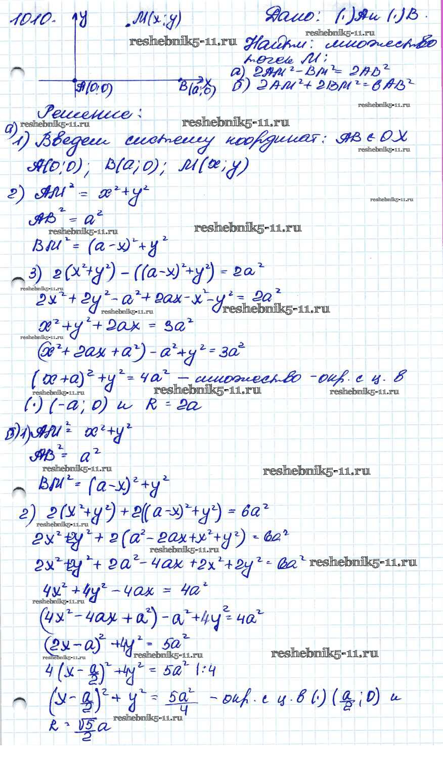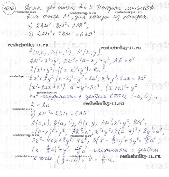 Готовая домашняя работа с ответами по Геометрии за 7, 8, 9 класс Атанасян, Бутузов, Кадомцев Учебник Просвещение 2010 ФГОС - Задачи 1010