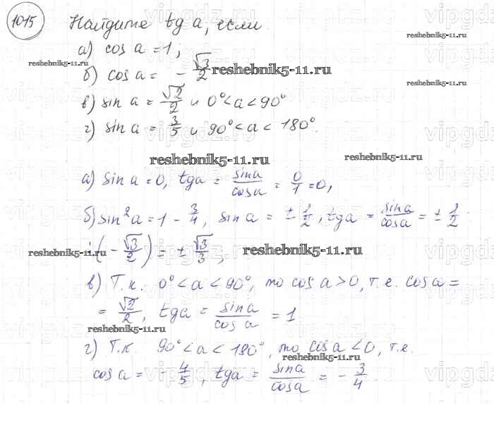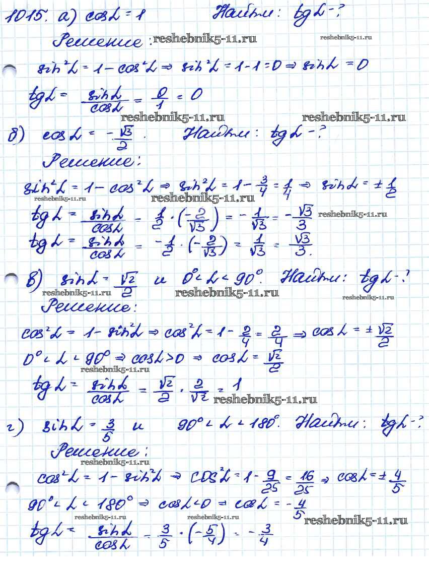Готовая домашняя работа с ответами по Геометрии за 7, 8, 9 класс Атанасян, Бутузов, Кадомцев Учебник Просвещение 2010 ФГОС - Задачи 1015