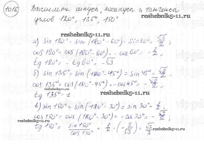Готовая домашняя работа с ответами по Геометрии за 7, 8, 9 класс Атанасян, Бутузов, Кадомцев Учебник Просвещение 2010 ФГОС - Задачи 1016