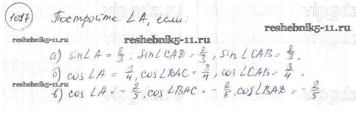 Готовая домашняя работа с ответами по Геометрии за 7, 8, 9 класс Атанасян, Бутузов, Кадомцев Учебник Просвещение 2010 ФГОС - Задачи 1017