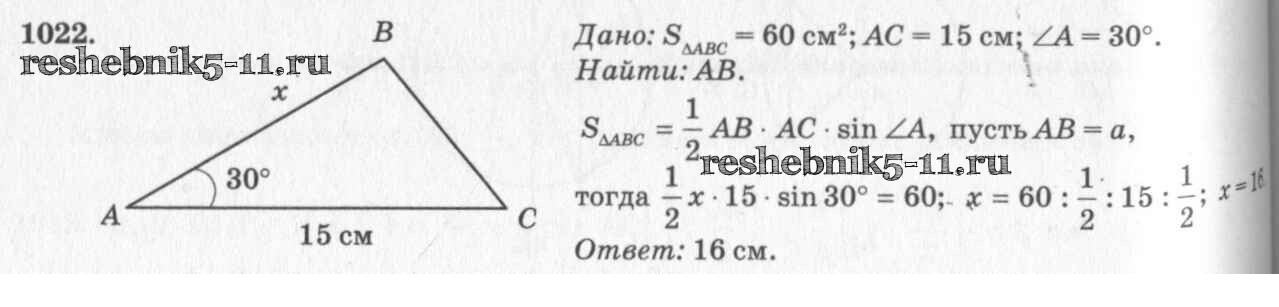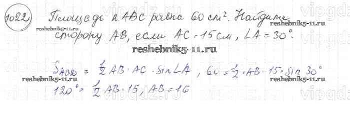 Готовая домашняя работа с ответами по Геометрии за 7, 8, 9 класс Атанасян, Бутузов, Кадомцев Учебник Просвещение 2010 ФГОС - Задачи 1022