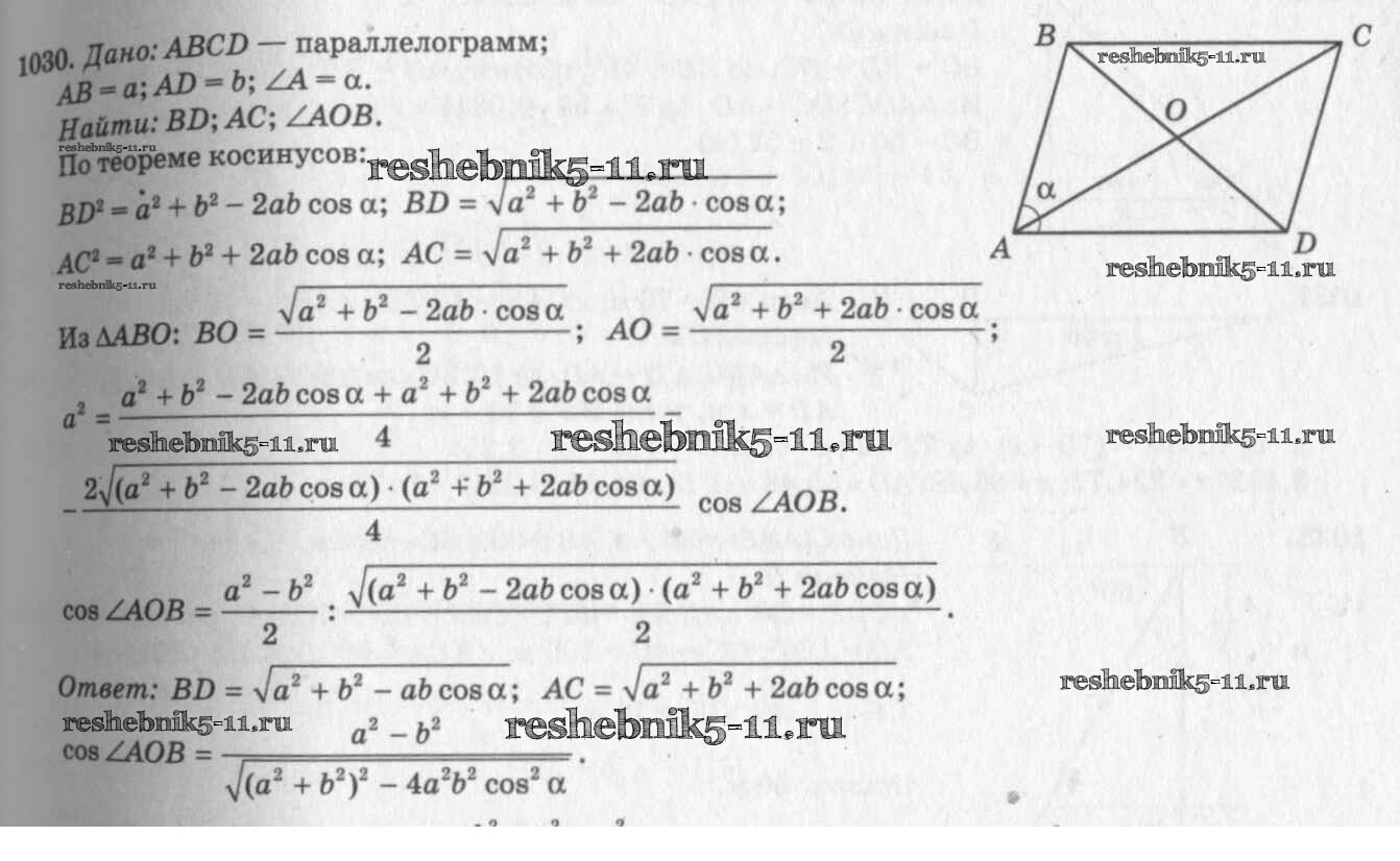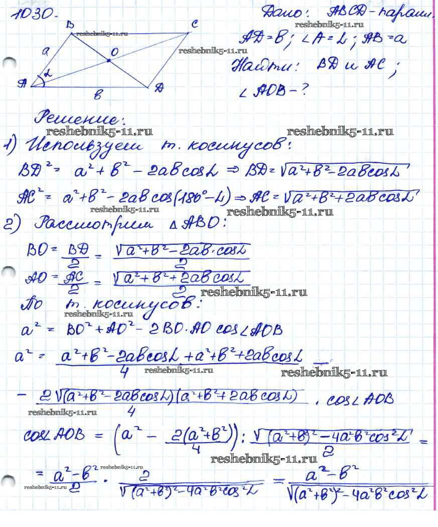 Готовая домашняя работа с ответами по Геометрии за 7, 8, 9 класс Атанасян, Бутузов, Кадомцев Учебник Просвещение 2010 ФГОС - Задачи 1030