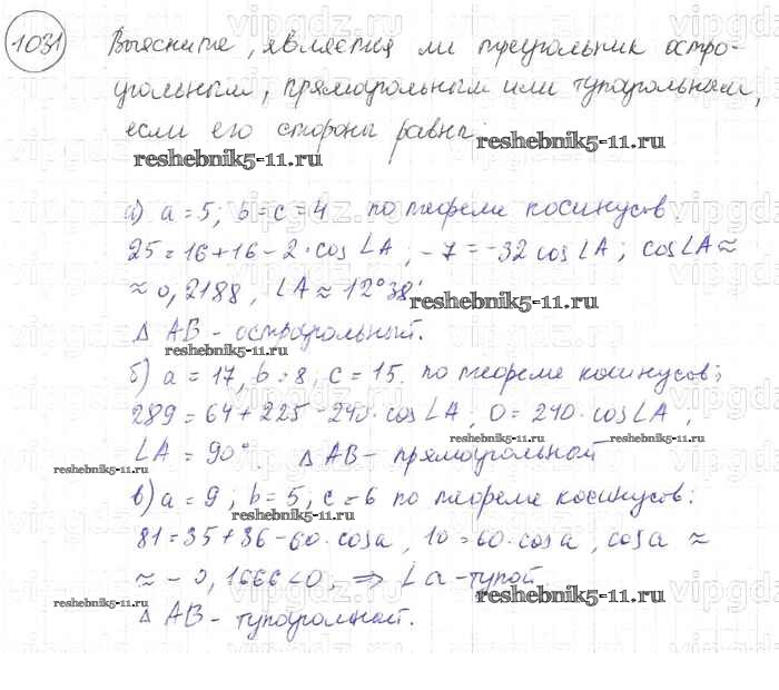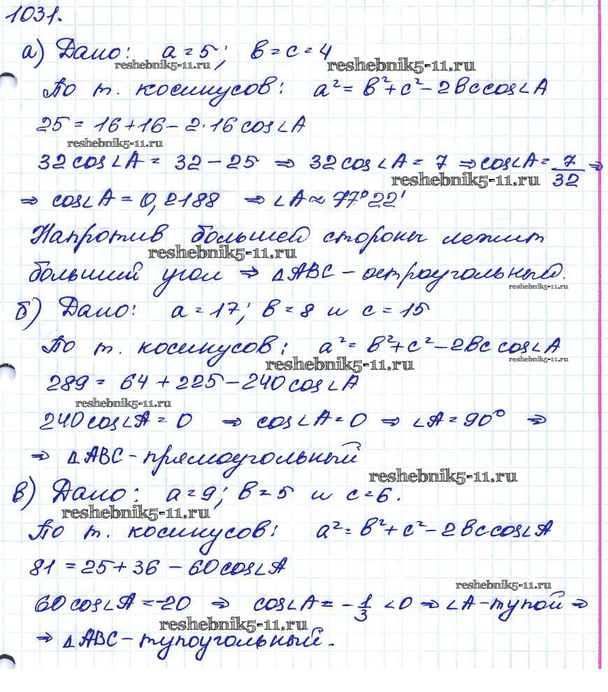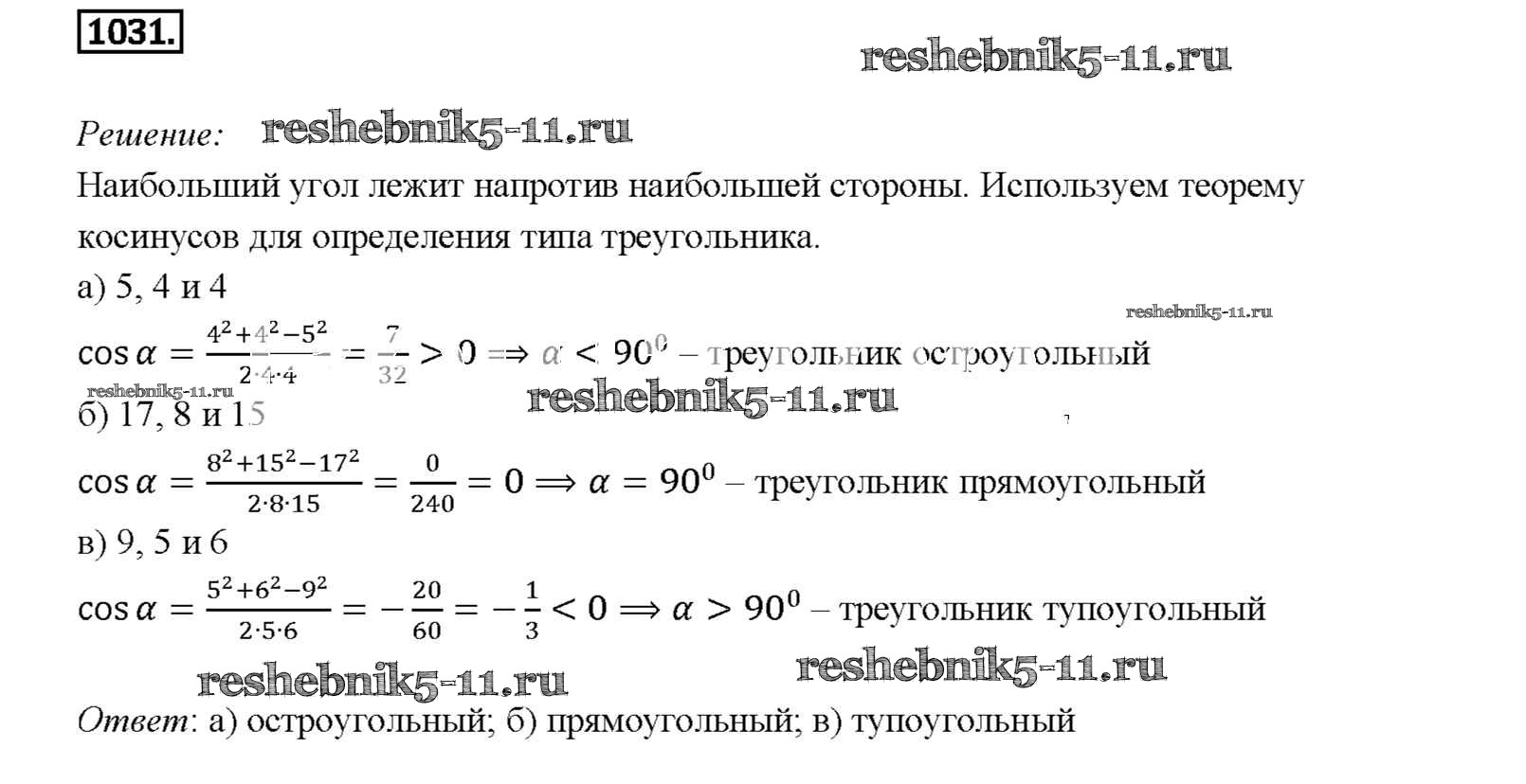 Готовая домашняя работа с ответами по Геометрии за 7, 8, 9 класс Атанасян, Бутузов, Кадомцев Учебник Просвещение 2010 ФГОС - Задачи 1031
