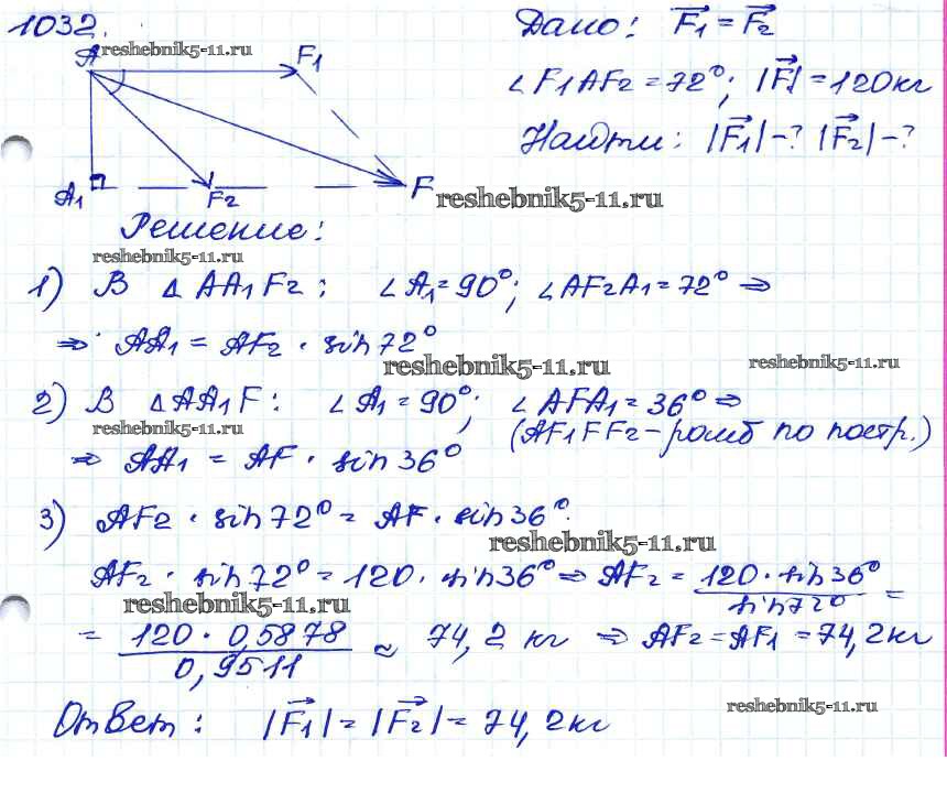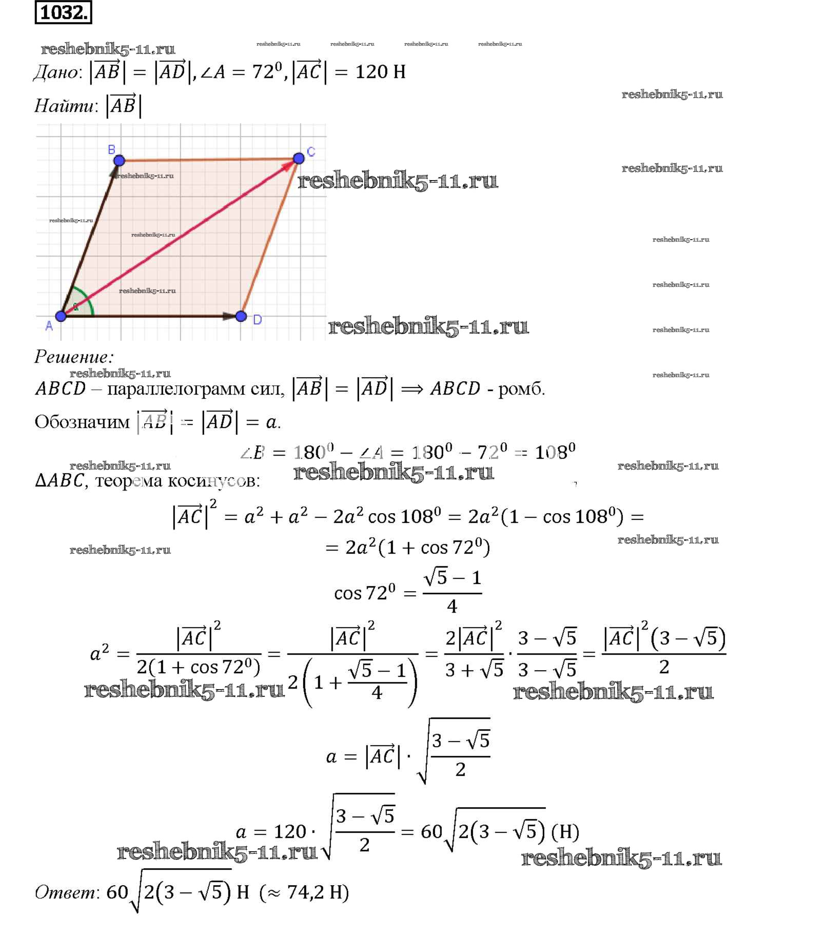 Готовая домашняя работа с ответами по Геометрии за 7, 8, 9 класс Атанасян, Бутузов, Кадомцев Учебник Просвещение 2010 ФГОС - Задачи 1032