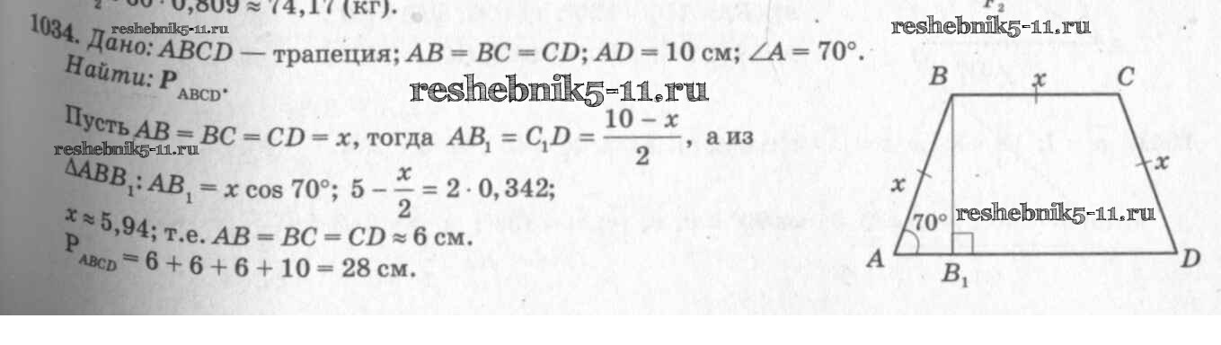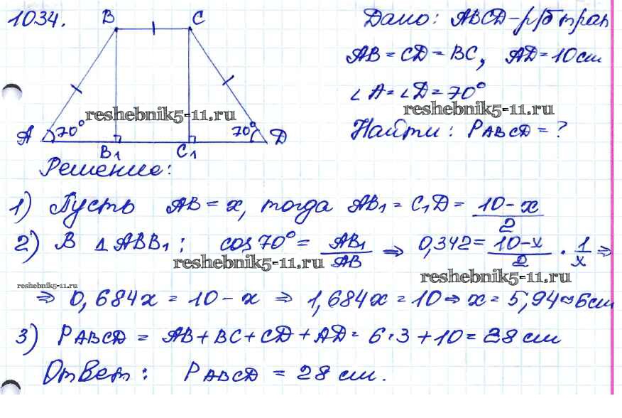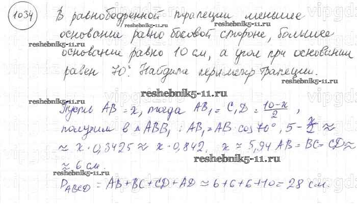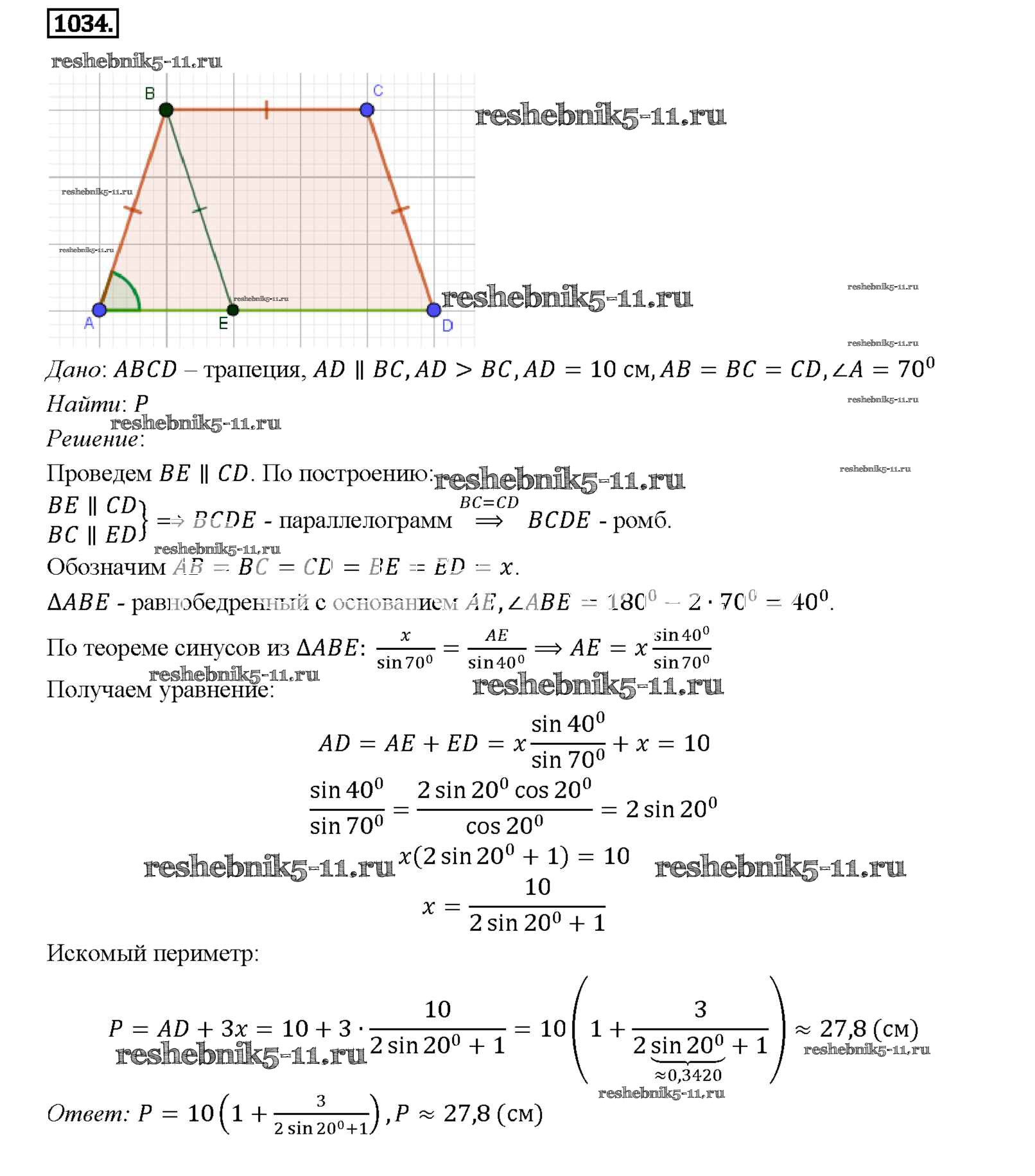Готовая домашняя работа с ответами по Геометрии за 7, 8, 9 класс Атанасян, Бутузов, Кадомцев Учебник Просвещение 2010 ФГОС - Задачи 1034