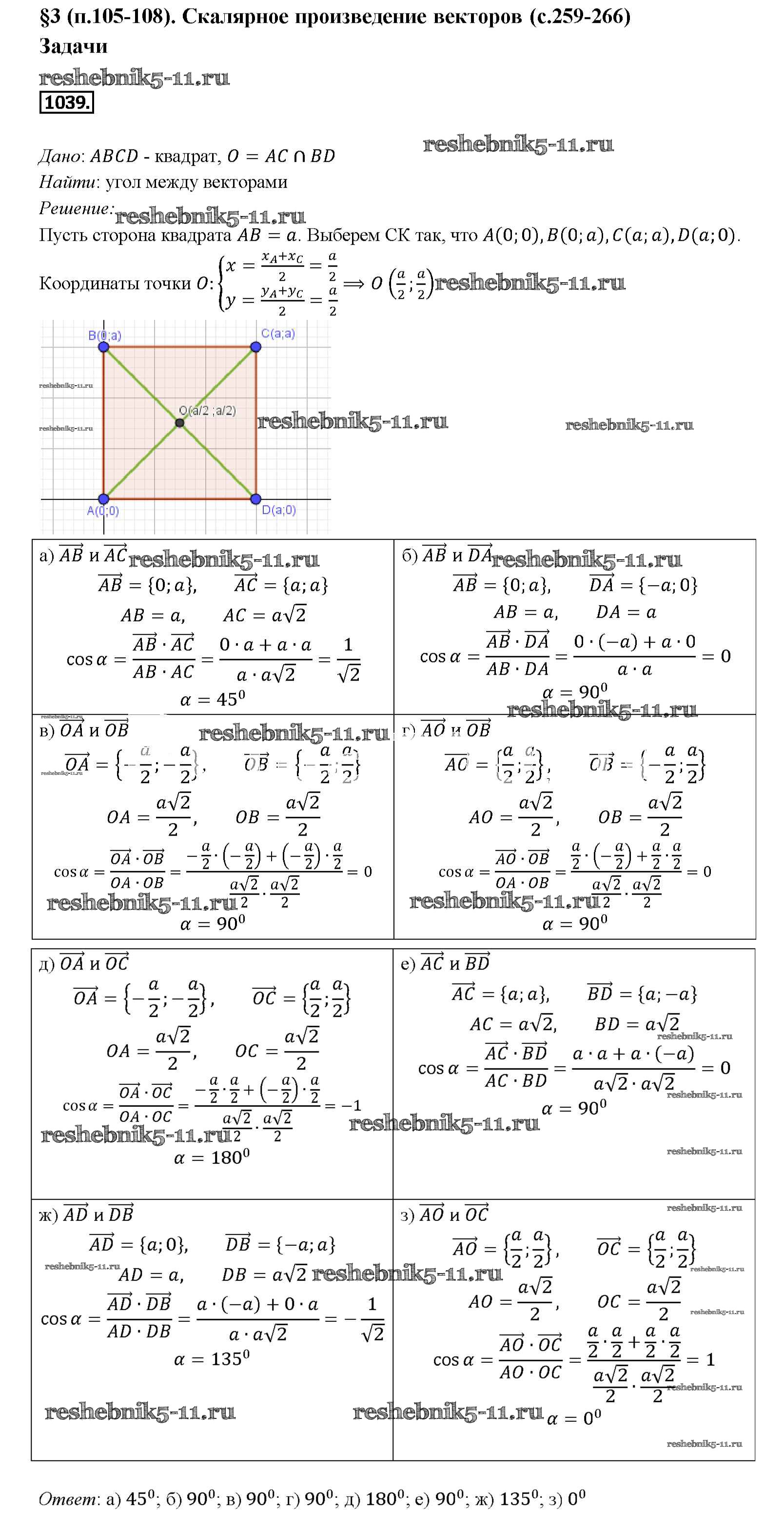 Готовая домашняя работа с ответами по Геометрии за 7, 8, 9 класс Атанасян, Бутузов, Кадомцев Учебник Просвещение 2010 ФГОС - Задачи 1039