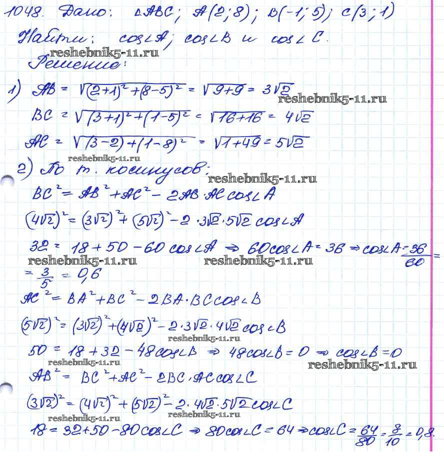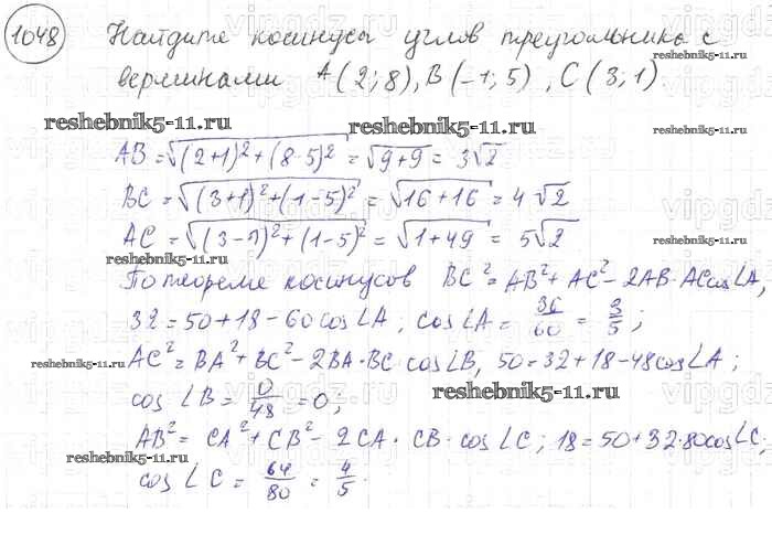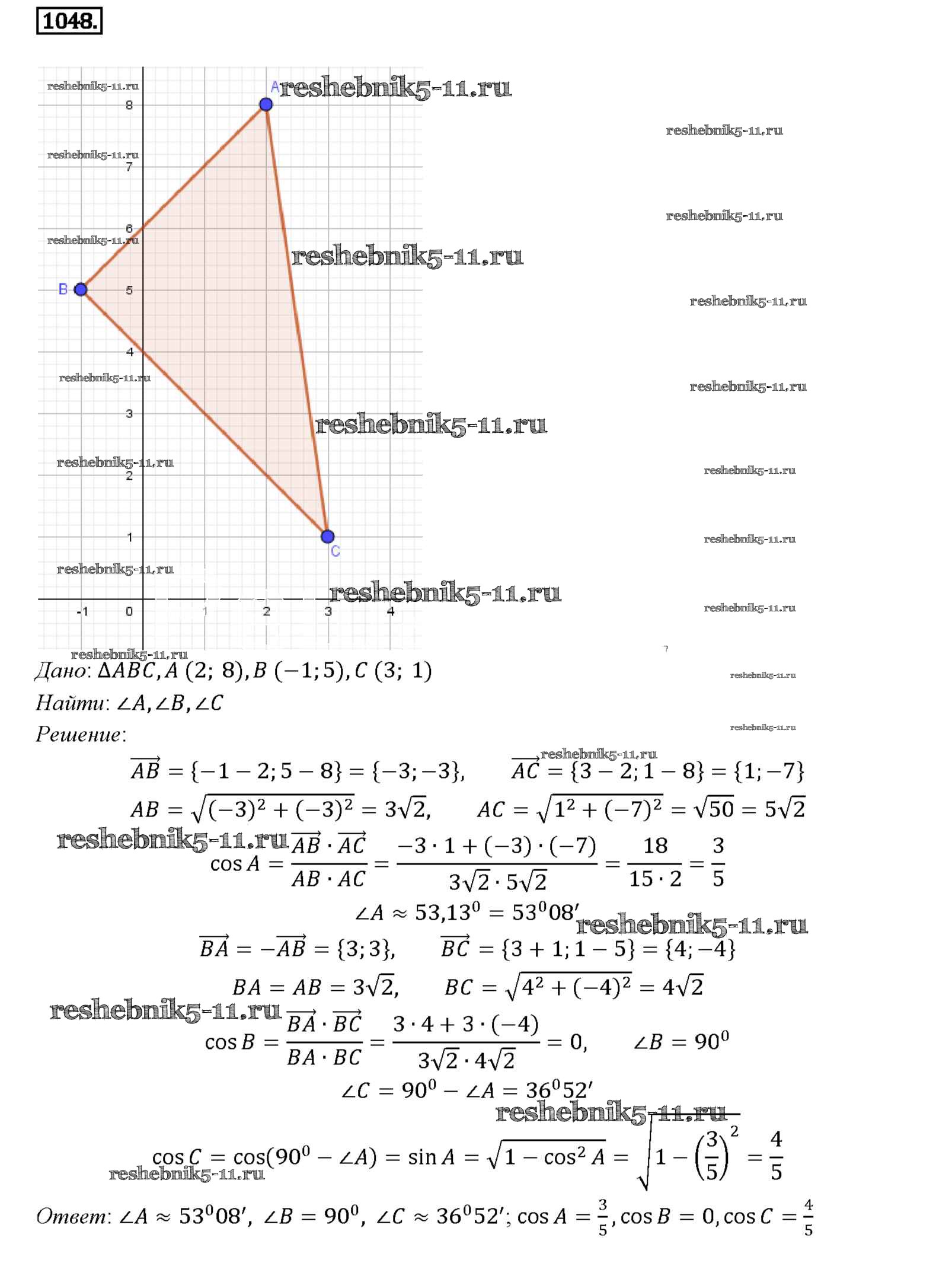 Готовая домашняя работа с ответами по Геометрии за 7, 8, 9 класс Атанасян, Бутузов, Кадомцев Учебник Просвещение 2010 ФГОС - Задачи 1048