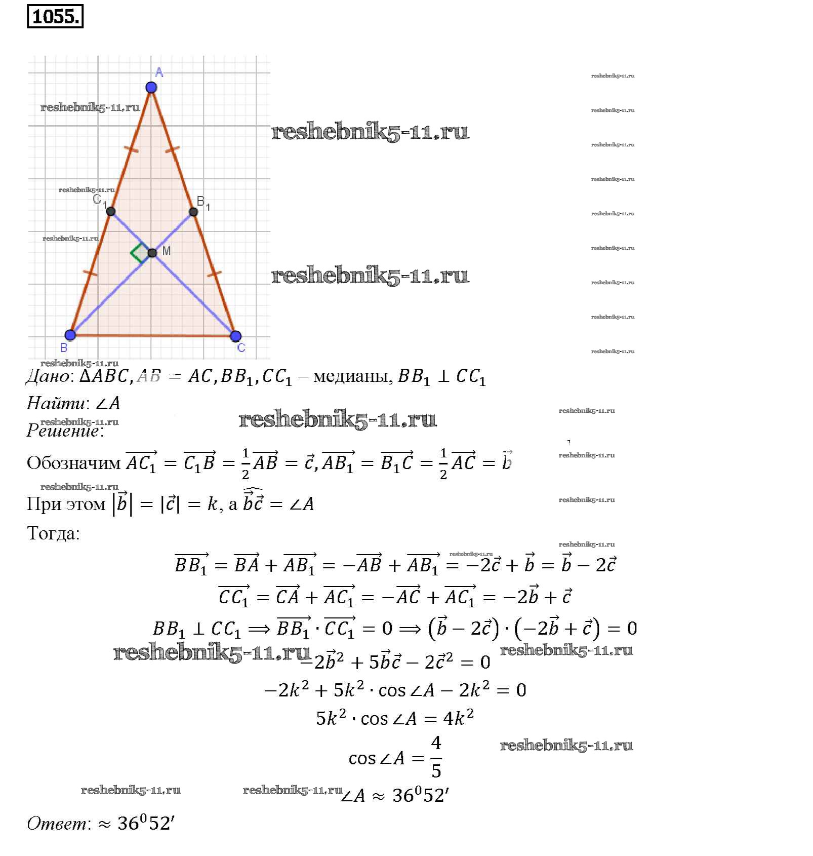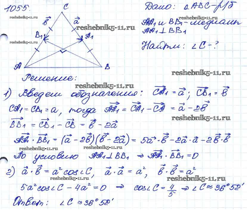 Готовая домашняя работа с ответами по Геометрии за 7, 8, 9 класс Атанасян, Бутузов, Кадомцев Учебник Просвещение 2010 ФГОС - Задачи 1055