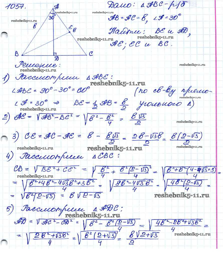 Готовая домашняя работа с ответами по Геометрии за 7, 8, 9 класс Атанасян, Бутузов, Кадомцев Учебник Просвещение 2010 ФГОС - Задачи 1057
