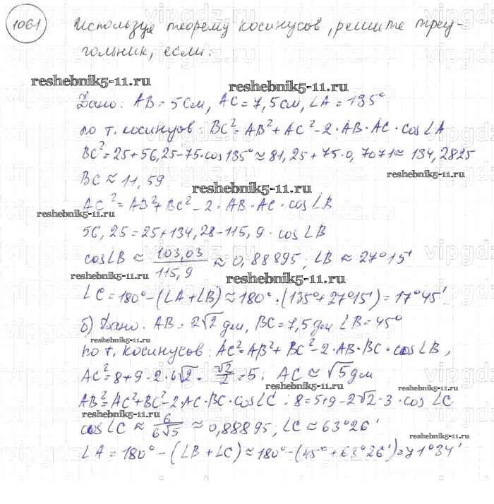 Готовая домашняя работа с ответами по Геометрии за 7, 8, 9 класс Атанасян, Бутузов, Кадомцев Учебник Просвещение 2010 ФГОС - Задачи 1061