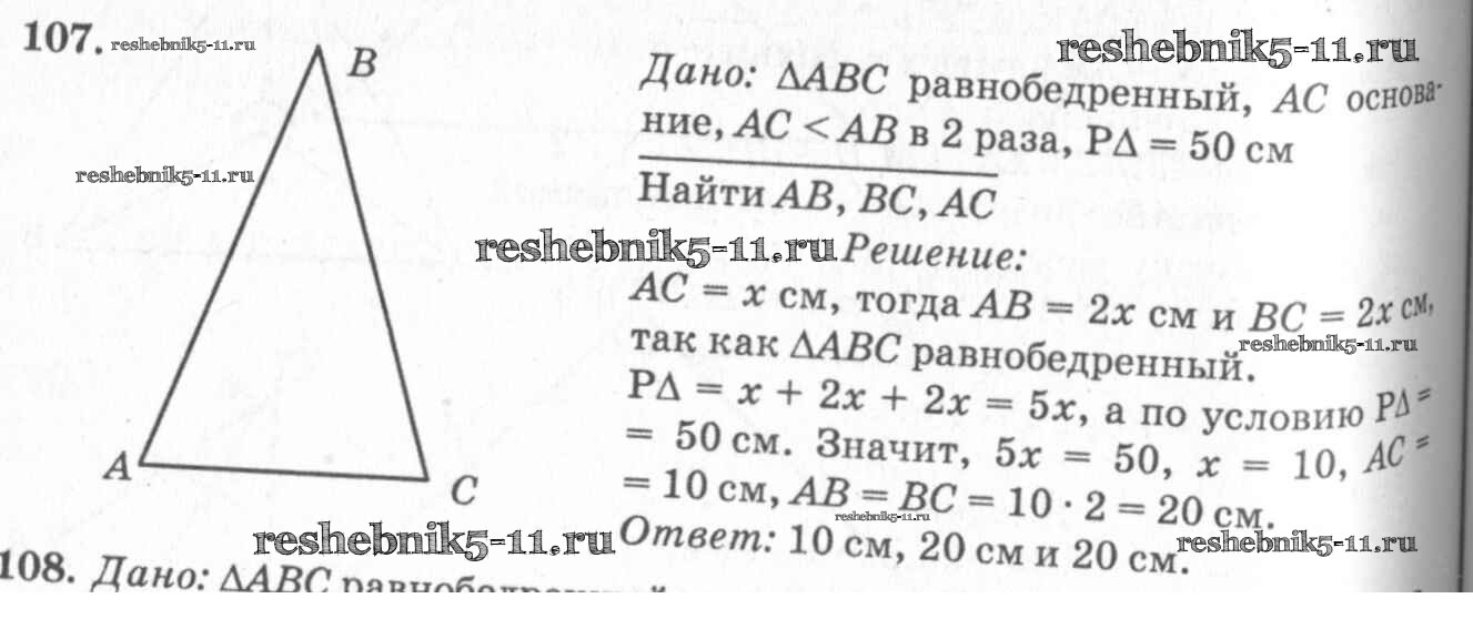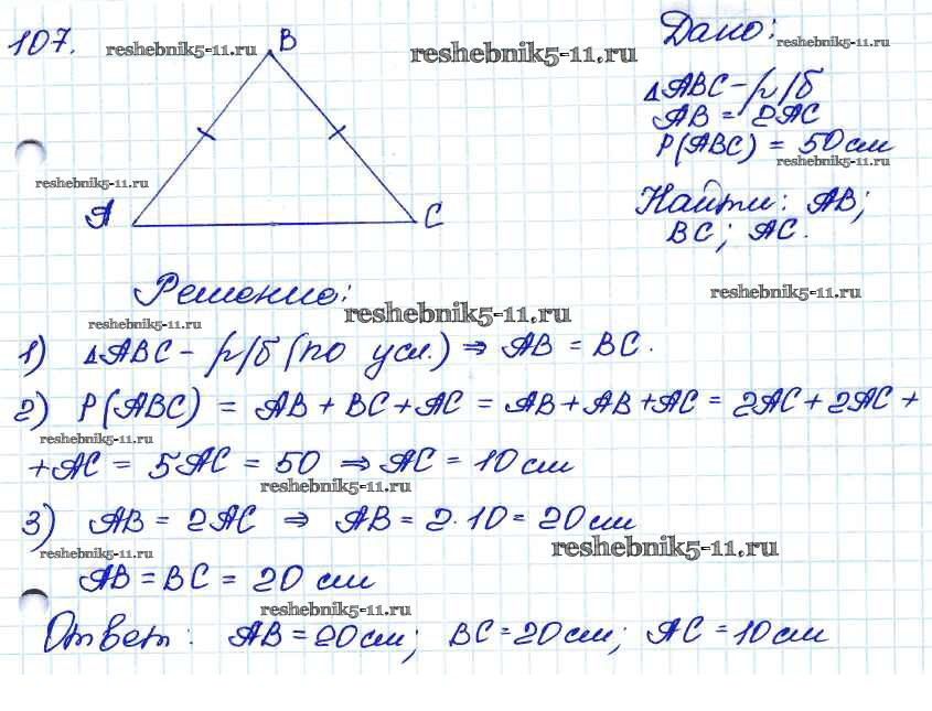 Готовая домашняя работа с ответами по Геометрии за 7, 8, 9 класс Атанасян, Бутузов, Кадомцев Учебник Просвещение 2010 ФГОС - Задачи 107