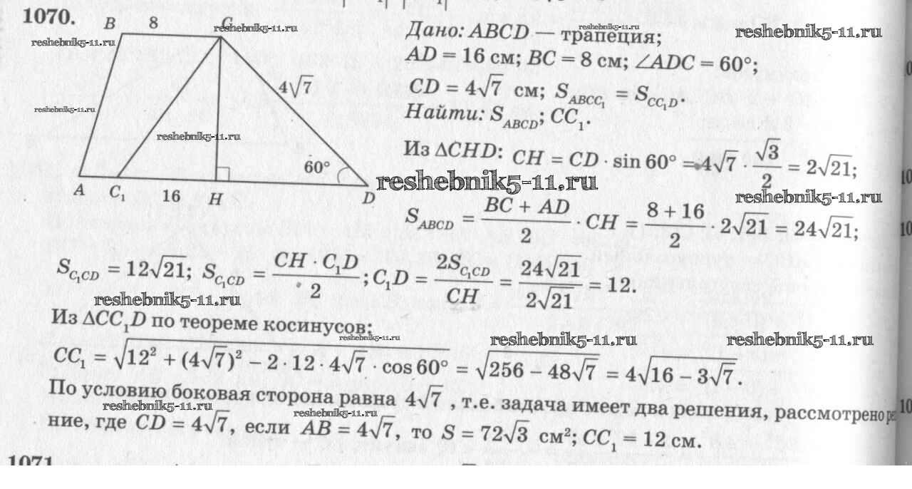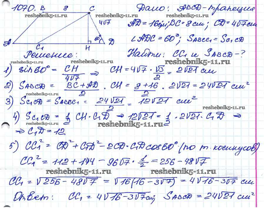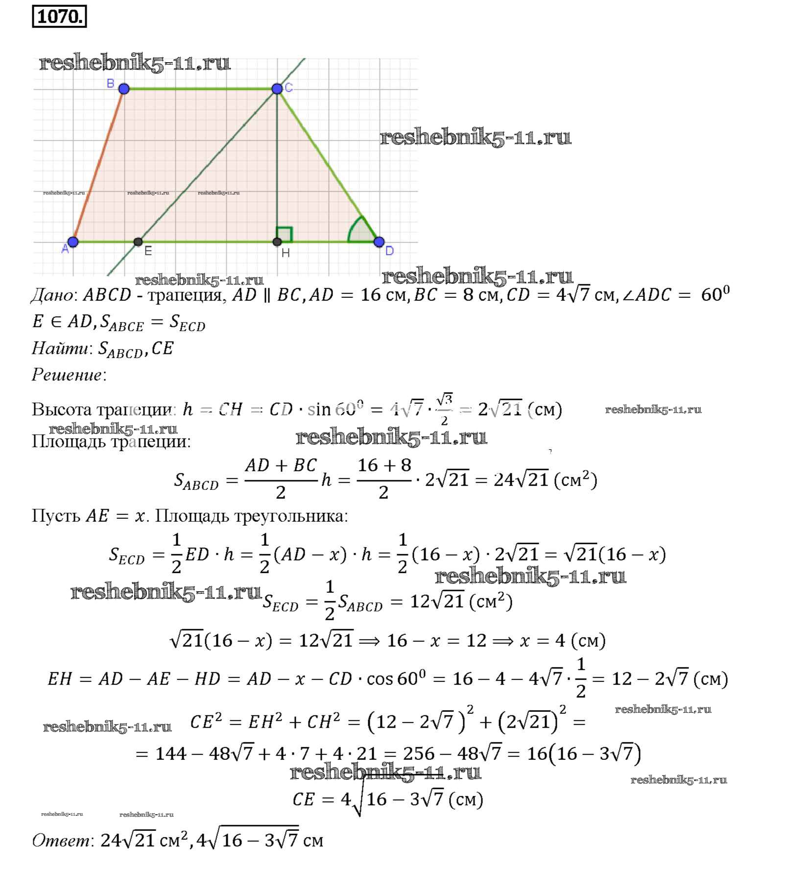 Готовая домашняя работа с ответами по Геометрии за 7, 8, 9 класс Атанасян, Бутузов, Кадомцев Учебник Просвещение 2010 ФГОС - Задачи 1070
