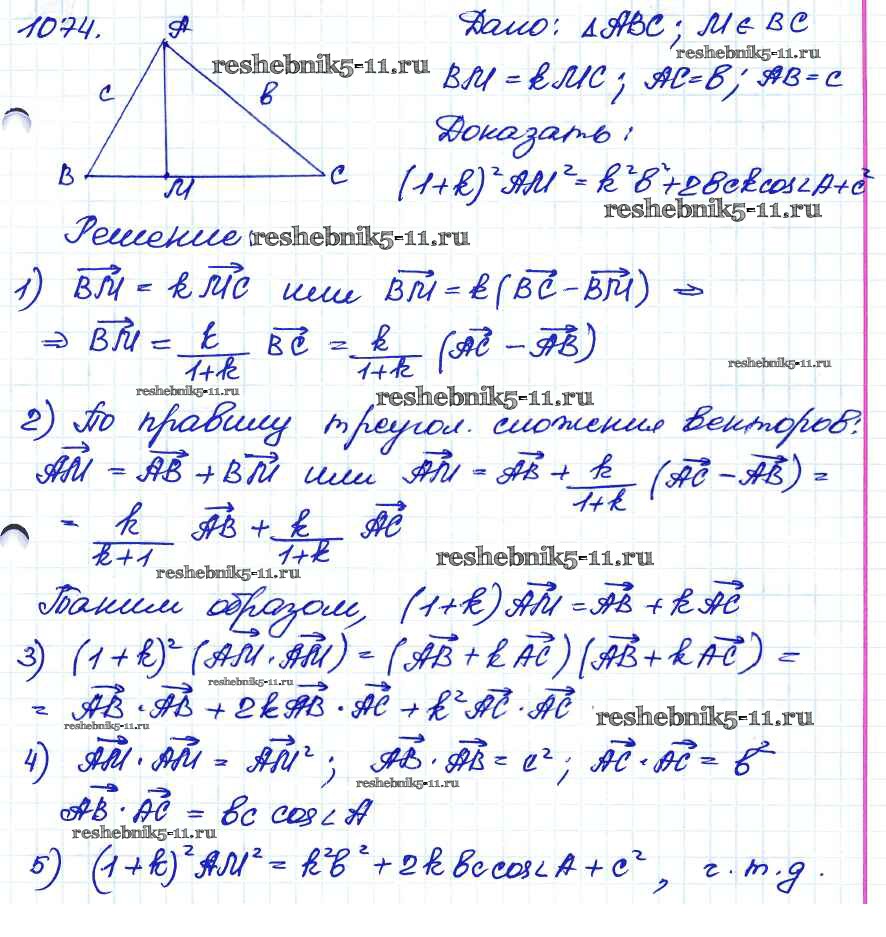 Готовая домашняя работа с ответами по Геометрии за 7, 8, 9 класс Атанасян, Бутузов, Кадомцев Учебник Просвещение 2010 ФГОС - Задачи 1074