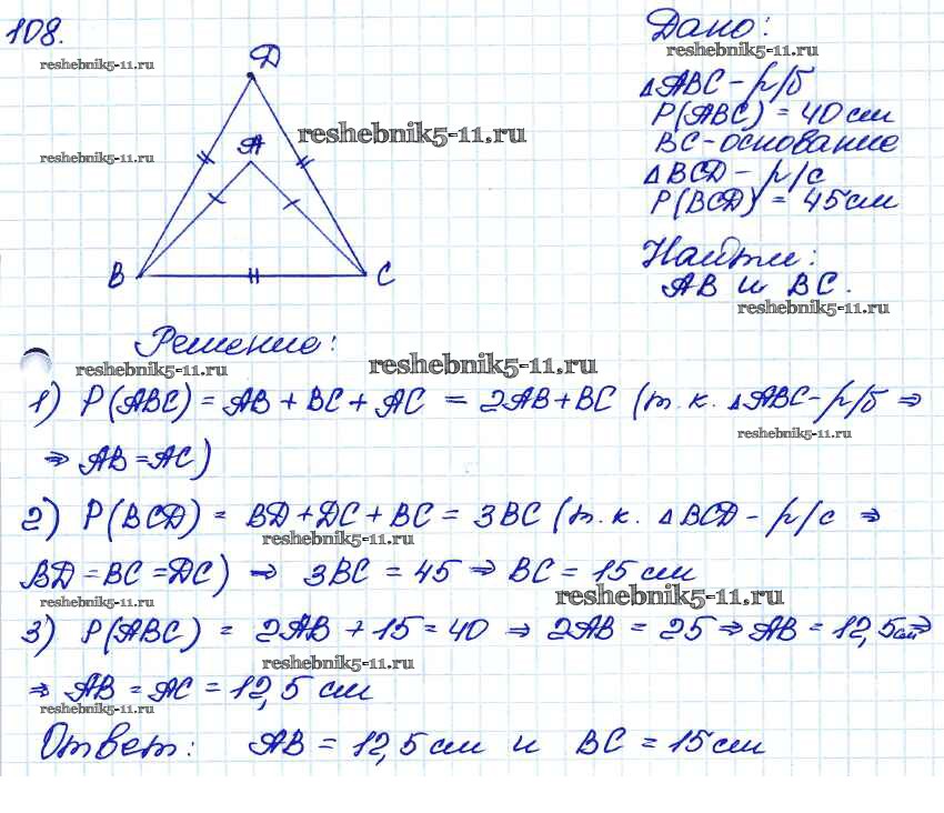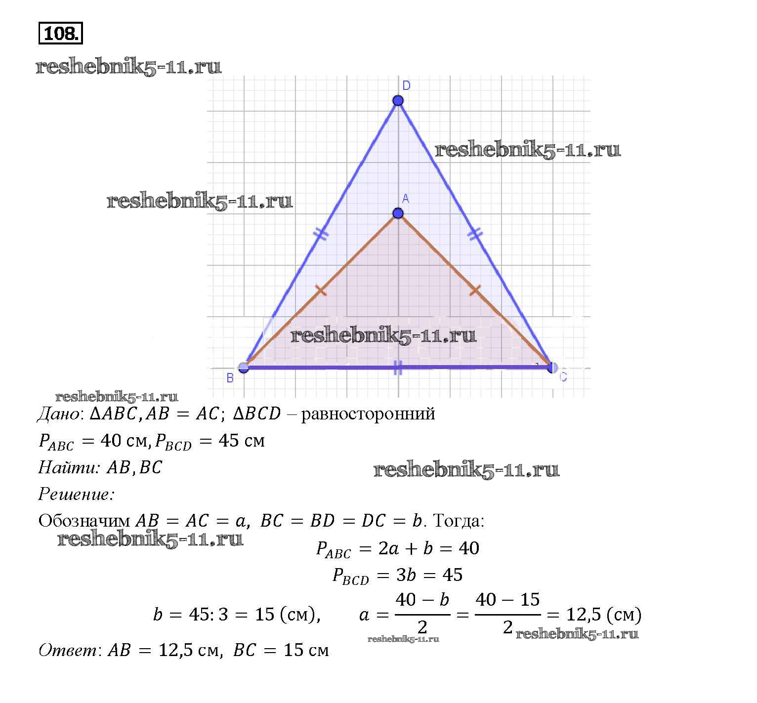 Готовая домашняя работа с ответами по Геометрии за 7, 8, 9 класс Атанасян, Бутузов, Кадомцев Учебник Просвещение 2010 ФГОС - Задачи 108