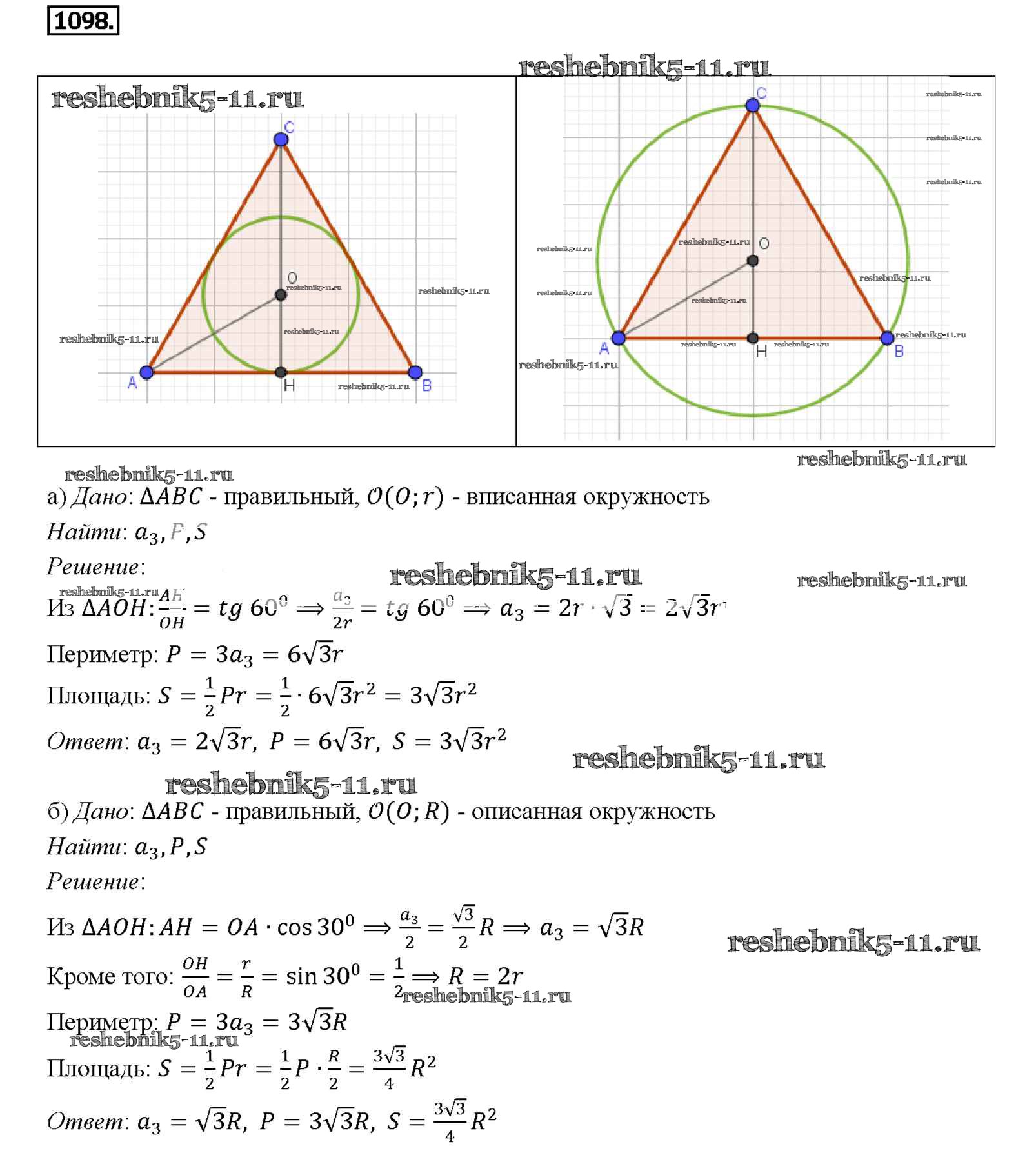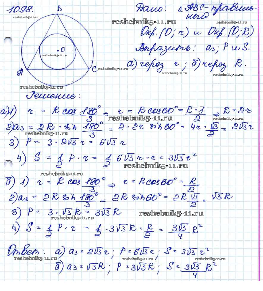 Готовая домашняя работа с ответами по Геометрии за 7, 8, 9 класс Атанасян, Бутузов, Кадомцев Учебник Просвещение 2010 ФГОС - Задачи 1098