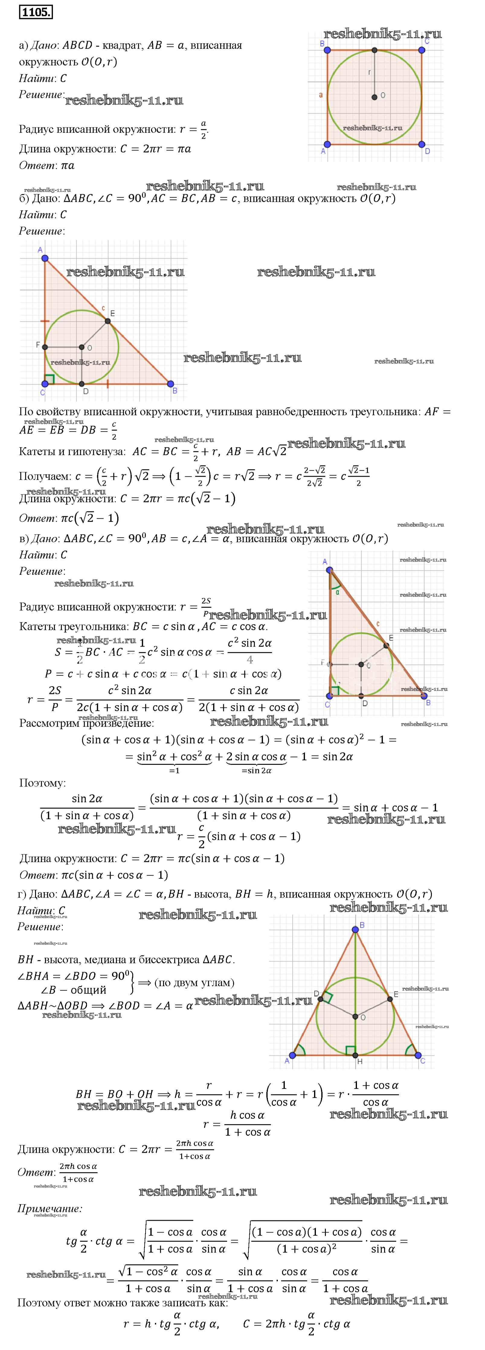 Готовая домашняя работа с ответами по Геометрии за 7, 8, 9 класс Атанасян, Бутузов, Кадомцев Учебник Просвещение 2010 ФГОС - Задачи 1105