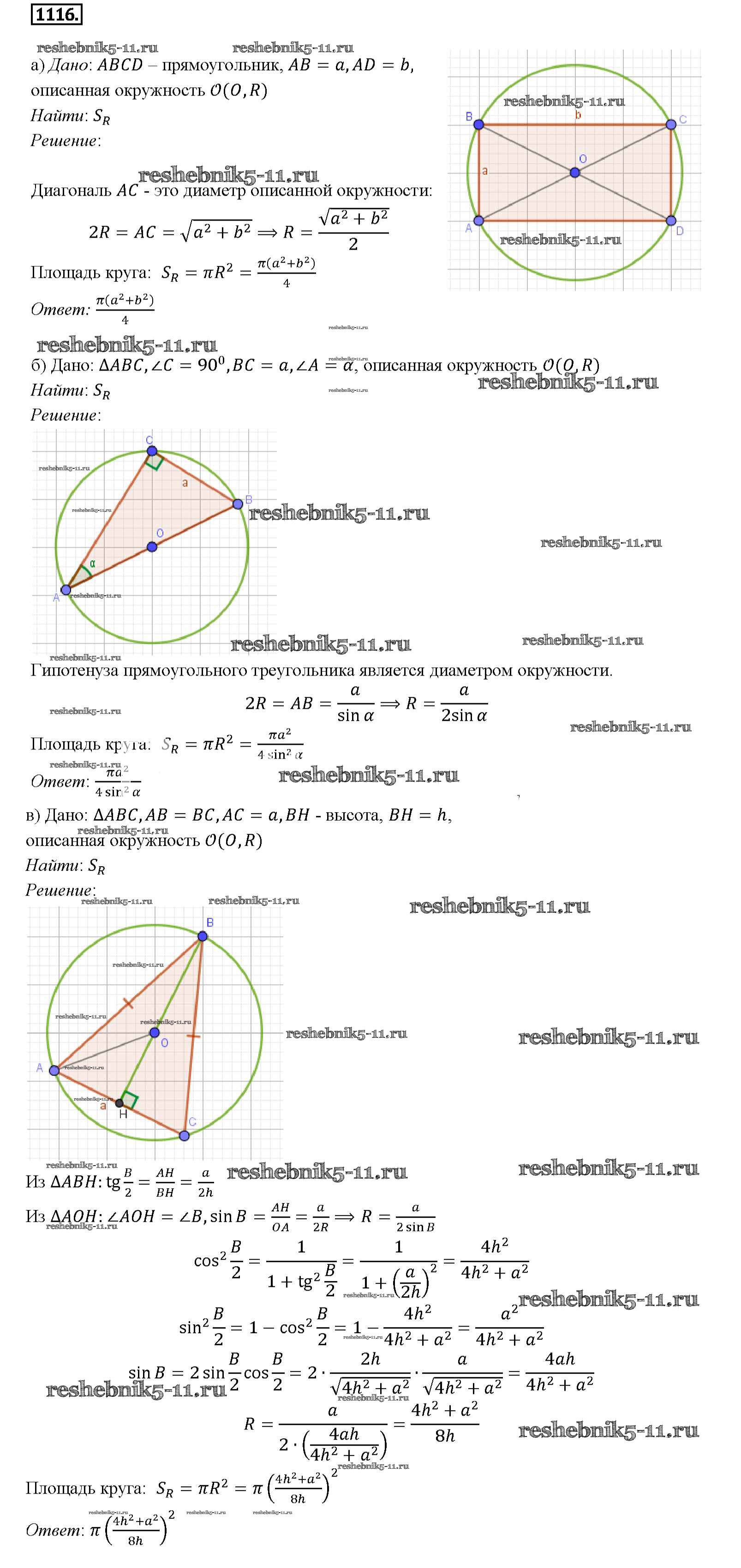 Готовая домашняя работа с ответами по Геометрии за 7, 8, 9 класс Атанасян, Бутузов, Кадомцев Учебник Просвещение 2010 ФГОС - Задачи 1116