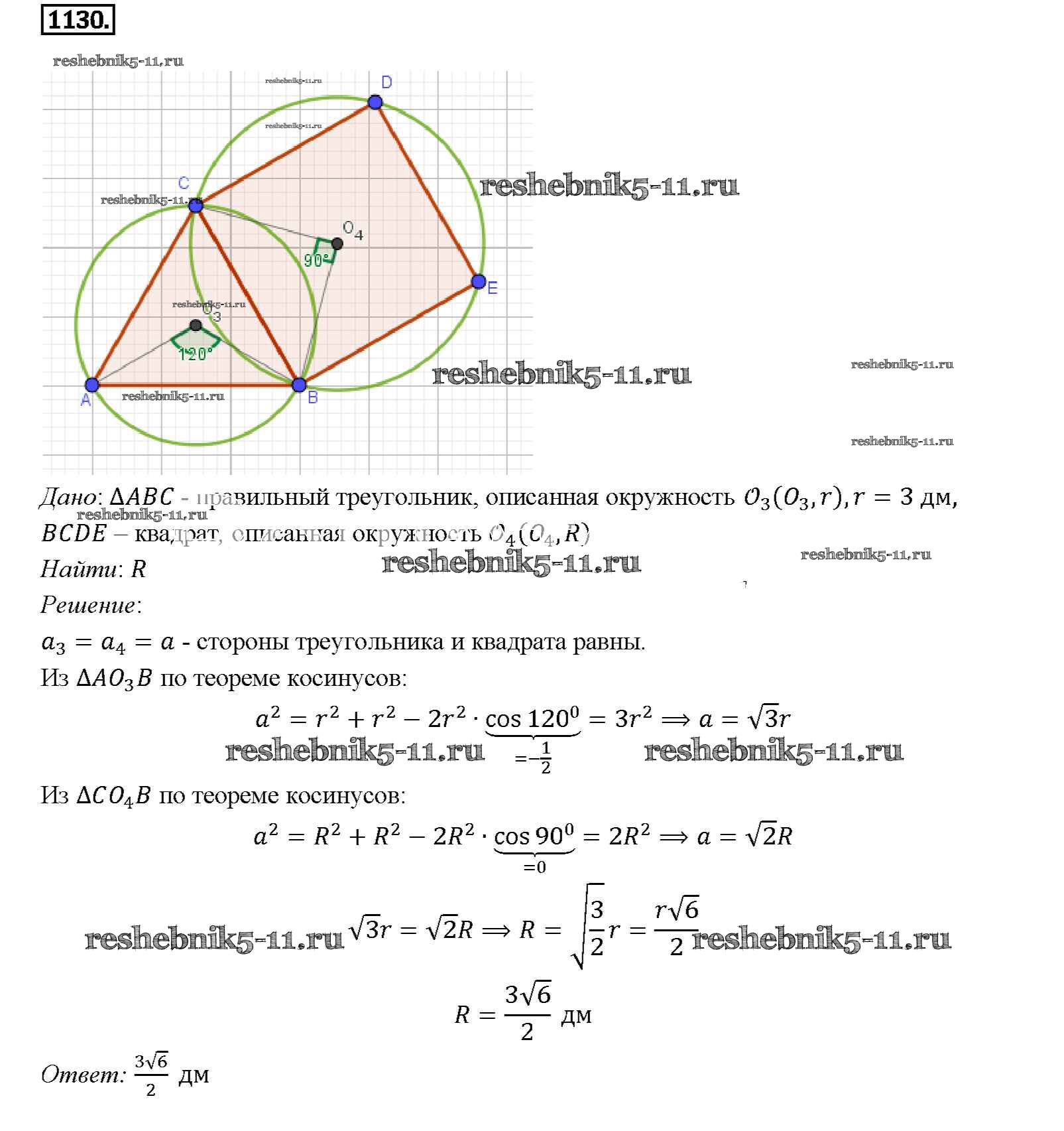 Готовая домашняя работа с ответами по Геометрии за 7, 8, 9 класс Атанасян, Бутузов, Кадомцев Учебник Просвещение 2010 ФГОС - Задачи 1130