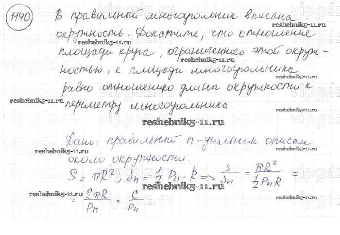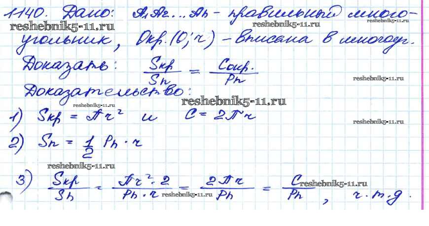 Готовая домашняя работа с ответами по Геометрии за 7, 8, 9 класс Атанасян, Бутузов, Кадомцев Учебник Просвещение 2010 ФГОС - Задачи 1140