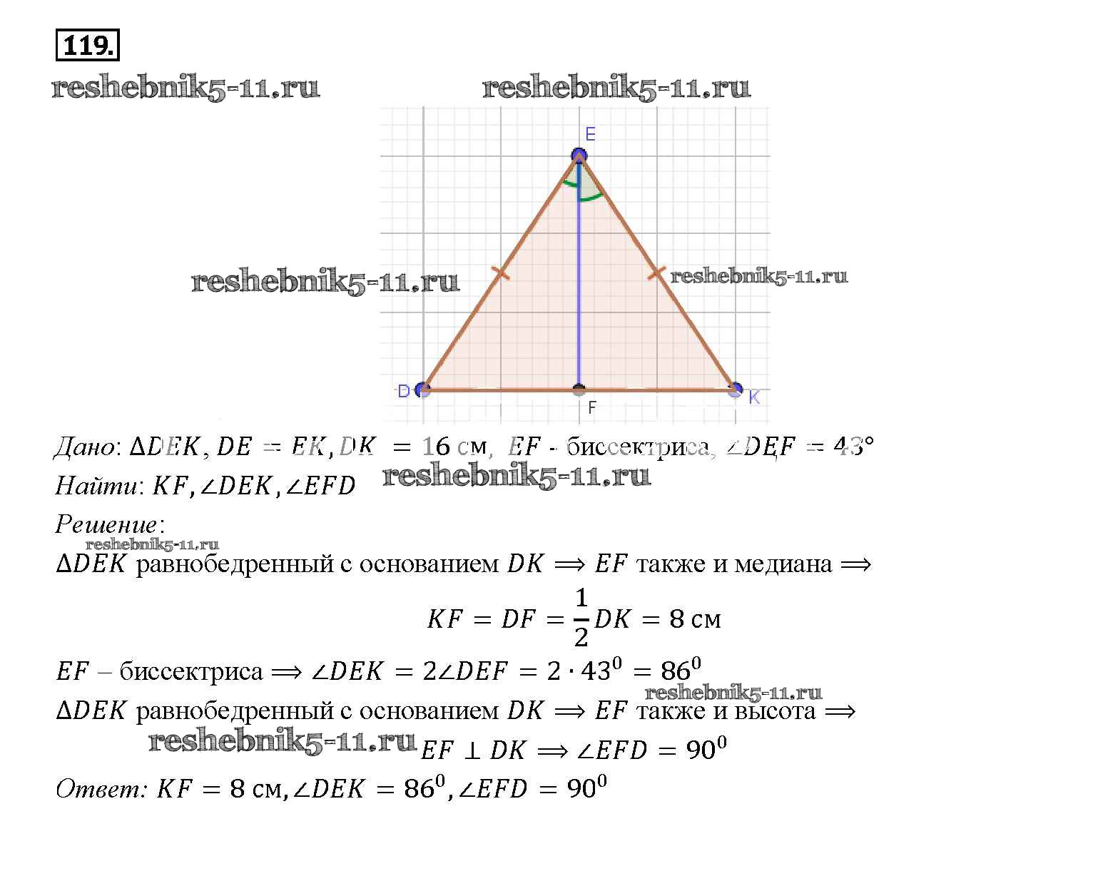 Готовая домашняя работа с ответами по Геометрии за 7, 8, 9 класс Атанасян, Бутузов, Кадомцев Учебник Просвещение 2010 ФГОС - Задачи 119