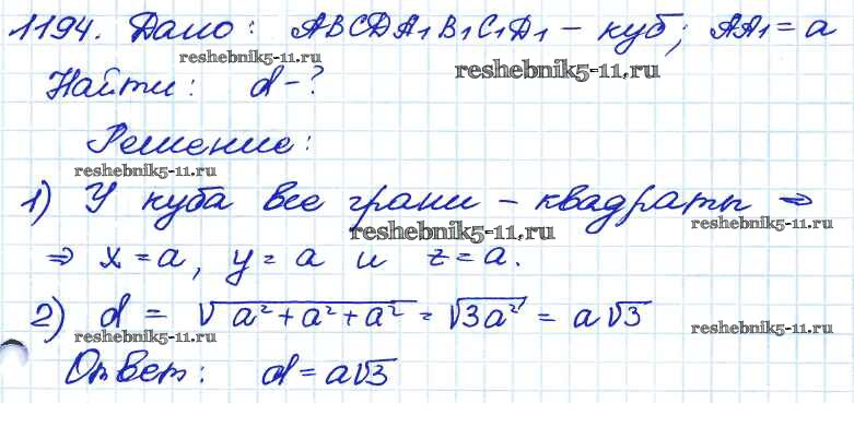 Готовая домашняя работа с ответами по Геометрии за 7, 8, 9 класс Атанасян, Бутузов, Кадомцев Учебник Просвещение 2010 ФГОС - Задачи 1194