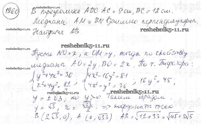 Готовая домашняя работа с ответами по Геометрии за 7, 8, 9 класс Атанасян, Бутузов, Кадомцев Учебник Просвещение 2010 ФГОС - Задачи 1260