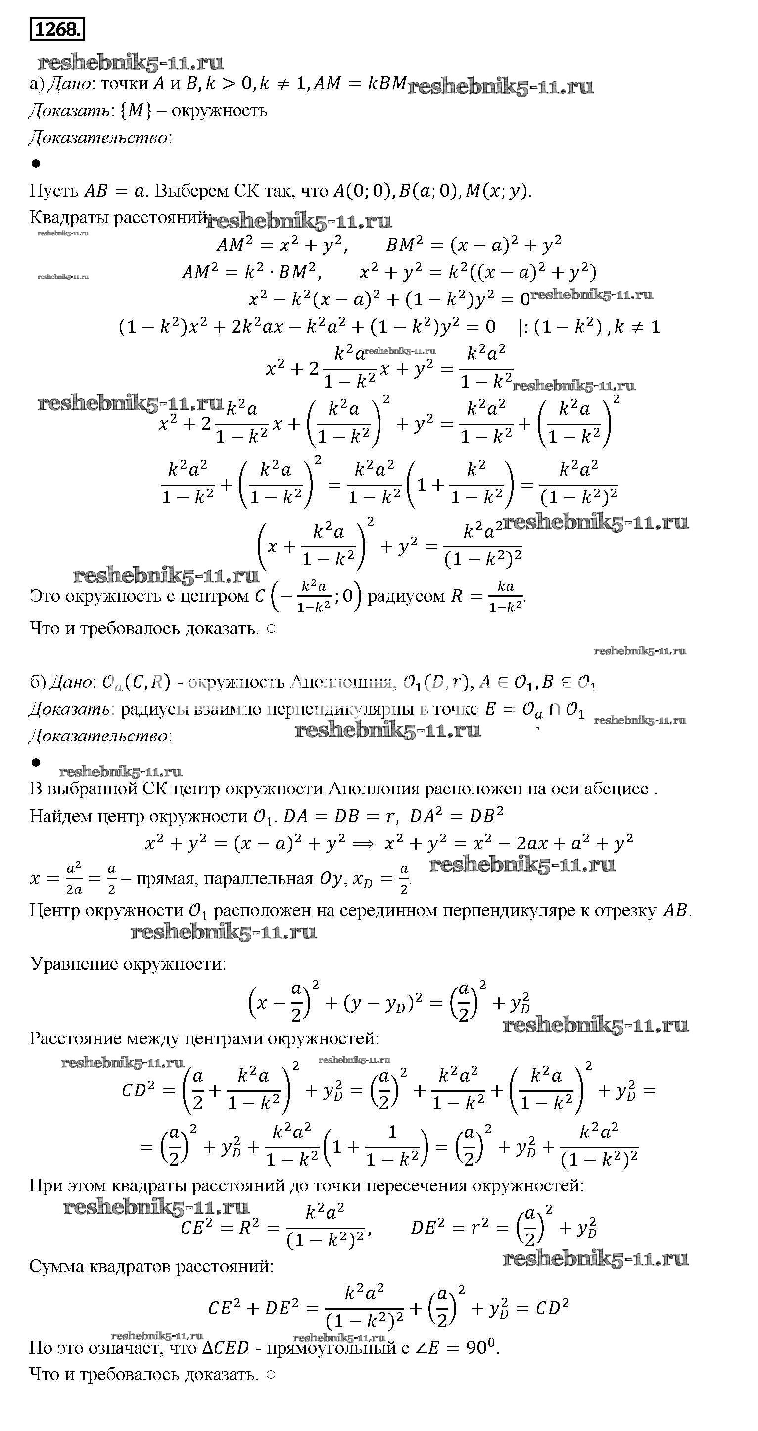 Готовая домашняя работа с ответами по Геометрии за 7, 8, 9 класс Атанасян, Бутузов, Кадомцев Учебник Просвещение 2010 ФГОС - Задачи 1268