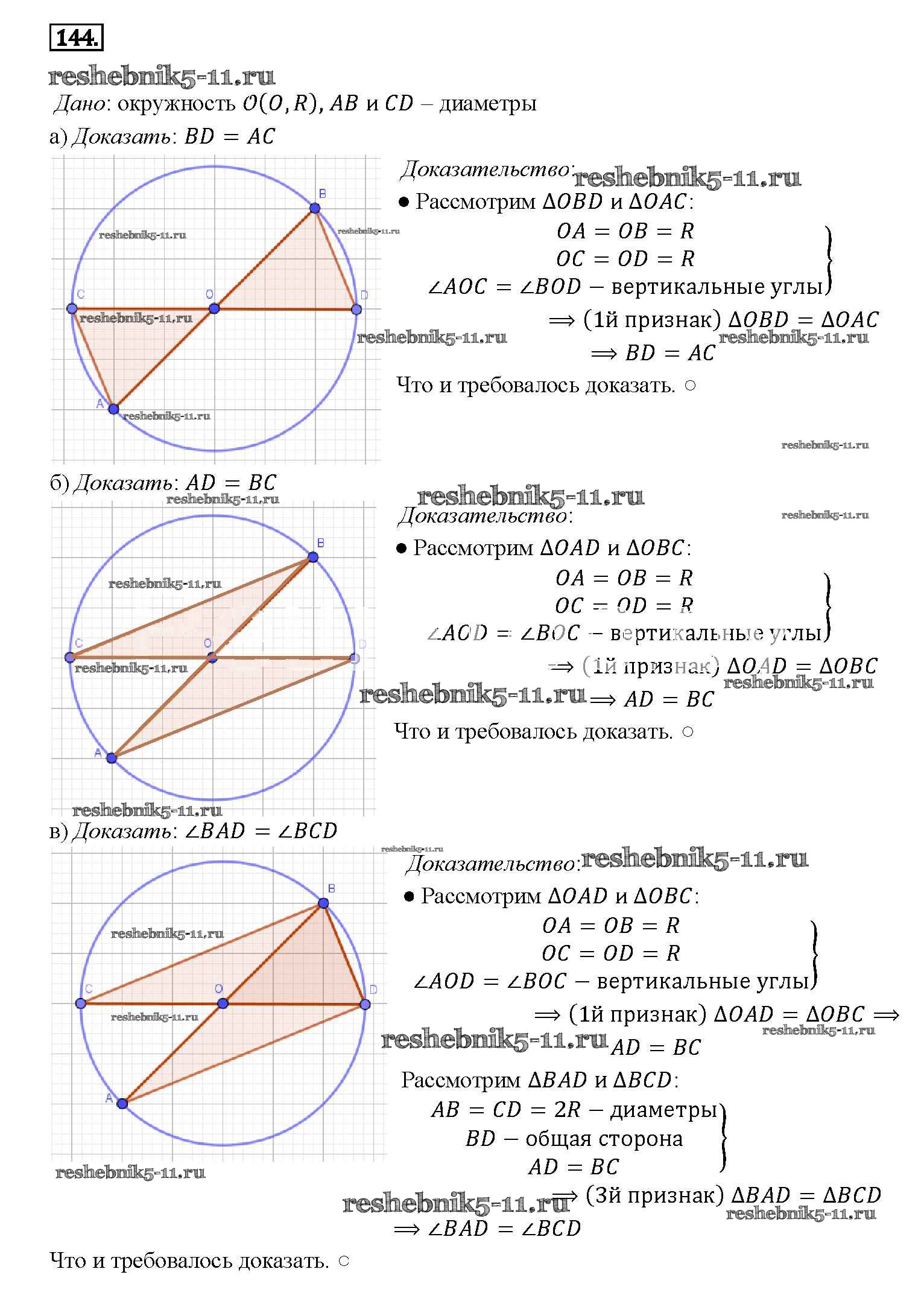 Готовая домашняя работа с ответами по Геометрии за 7, 8, 9 класс Атанасян, Бутузов, Кадомцев Учебник Просвещение 2010 ФГОС - Задачи 144