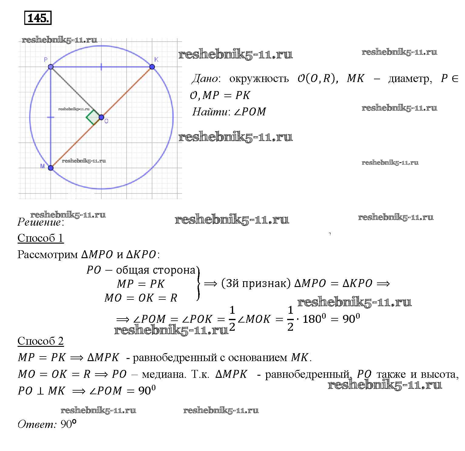 Готовая домашняя работа с ответами по Геометрии за 7, 8, 9 класс Атанасян, Бутузов, Кадомцев Учебник Просвещение 2010 ФГОС - Задачи 145