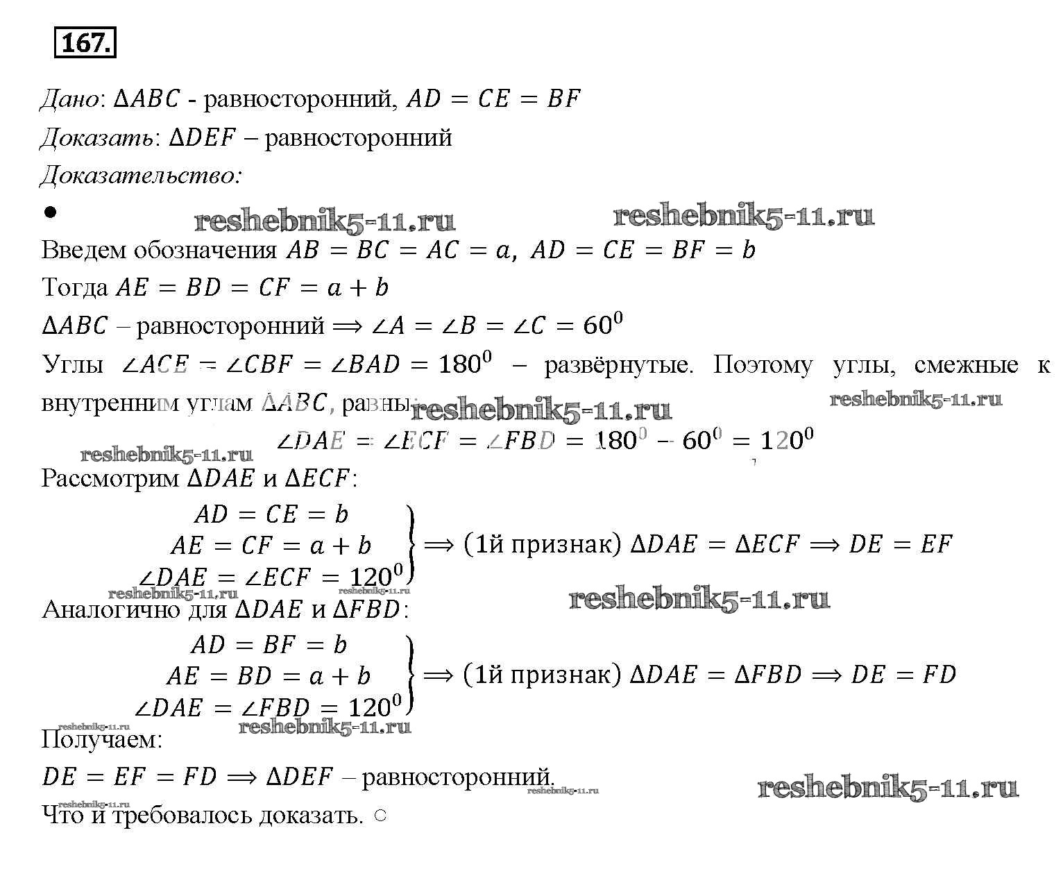Готовая домашняя работа с ответами по Геометрии за 7, 8, 9 класс Атанасян, Бутузов, Кадомцев Учебник Просвещение 2010 ФГОС - Задачи 167