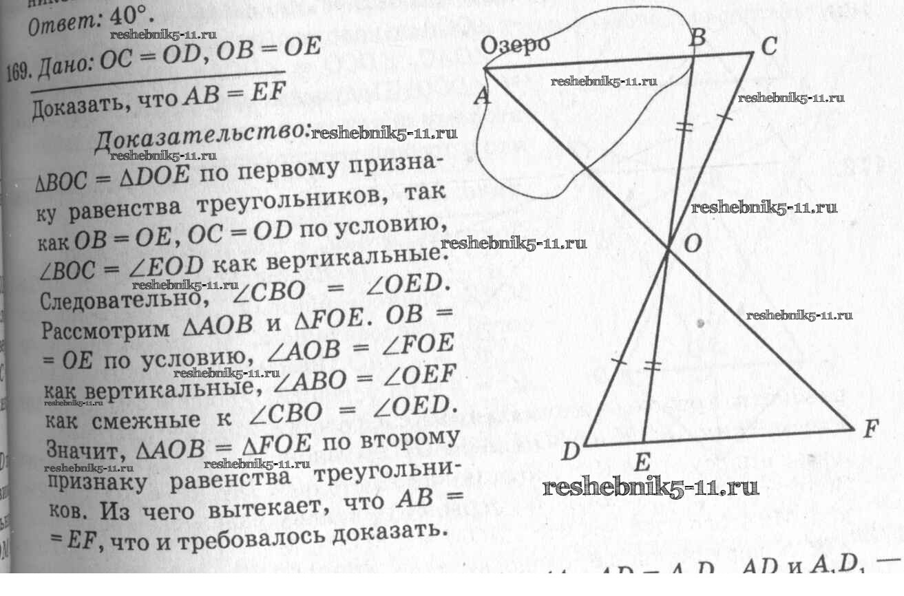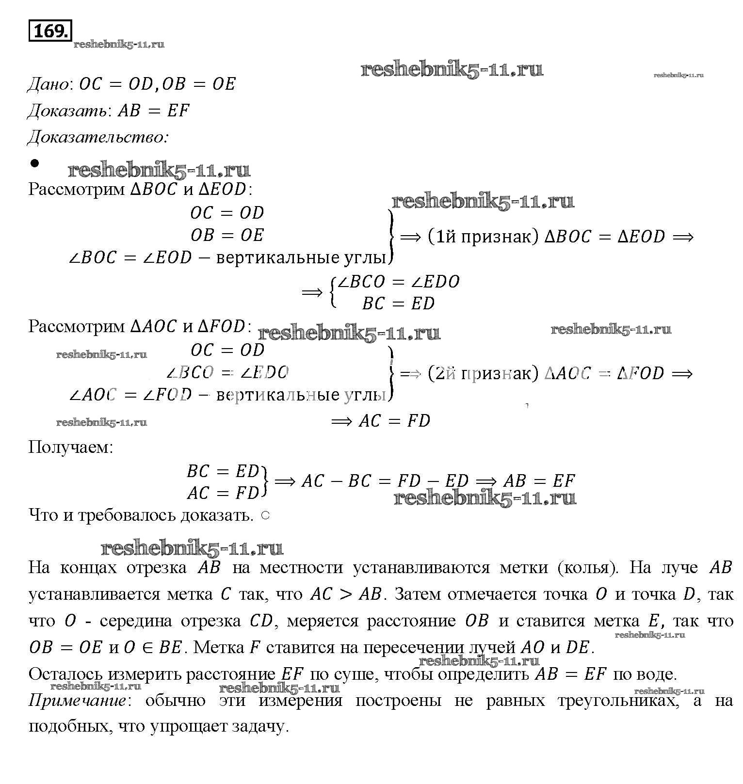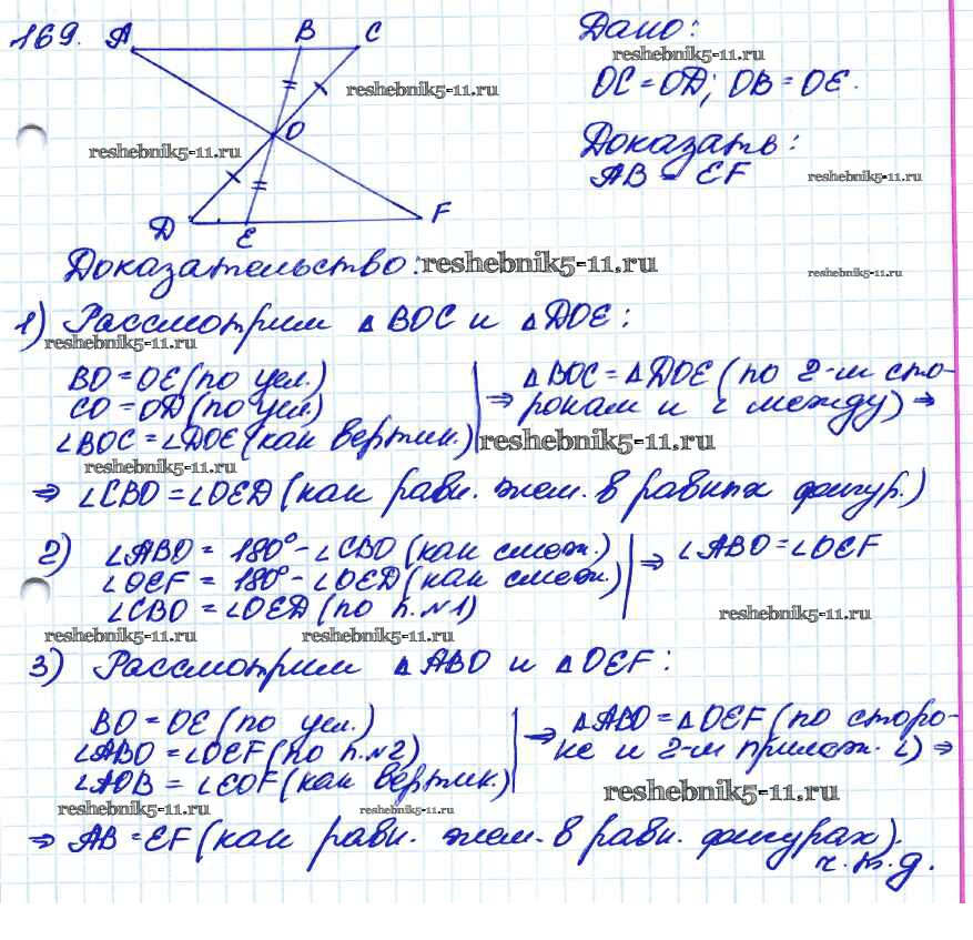 Готовая домашняя работа с ответами по Геометрии за 7, 8, 9 класс Атанасян, Бутузов, Кадомцев Учебник Просвещение 2010 ФГОС - Задачи 169