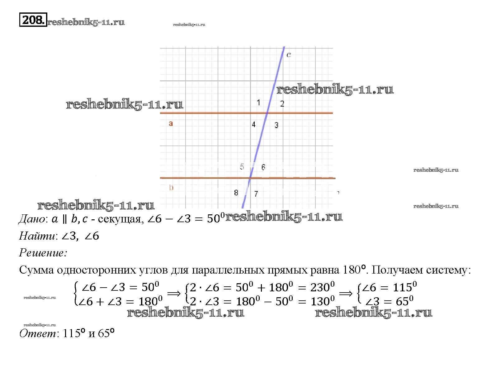 Готовая домашняя работа с ответами по Геометрии за 7, 8, 9 класс Атанасян, Бутузов, Кадомцев Учебник Просвещение 2010 ФГОС - Задачи 208