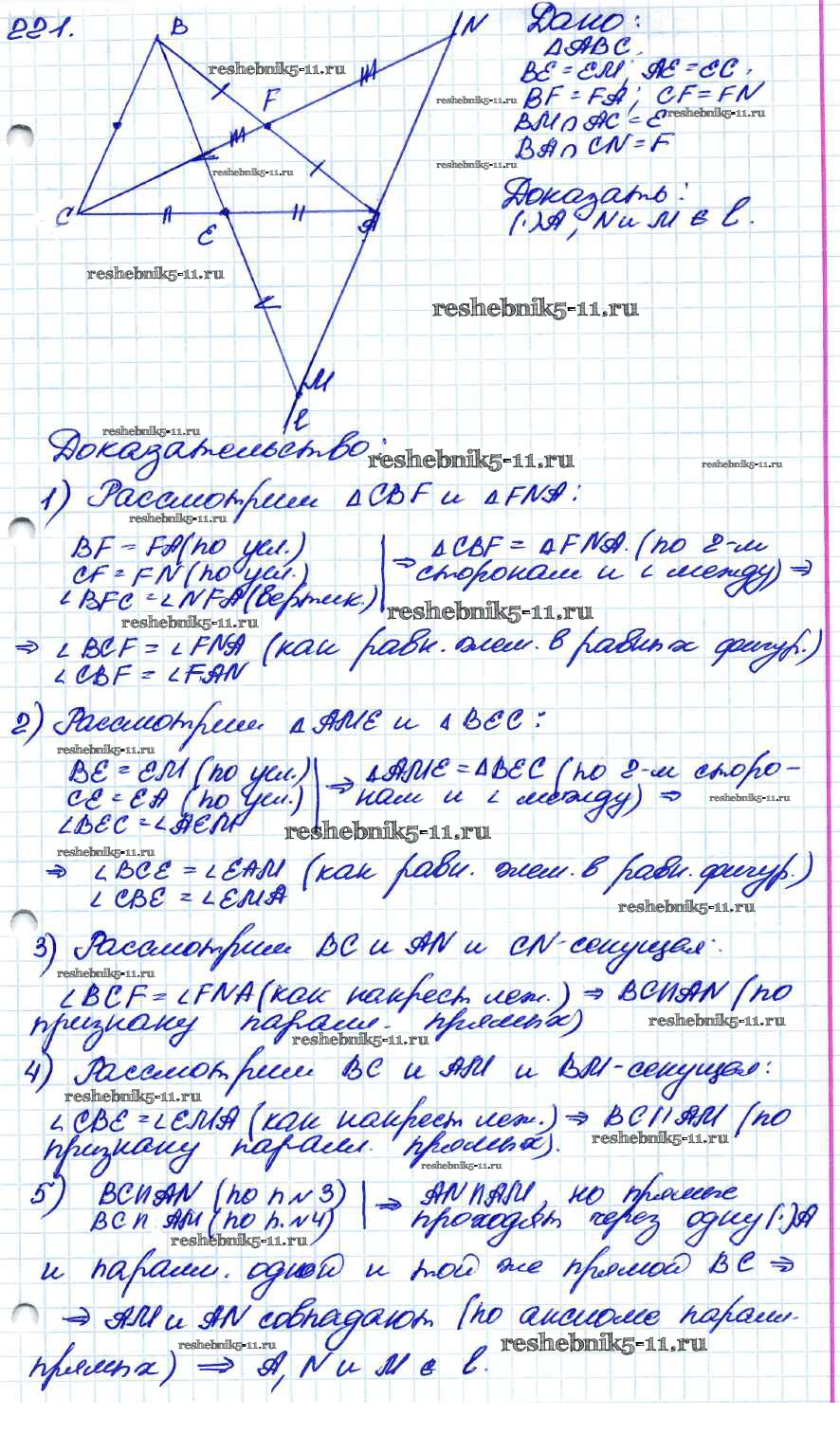 Готовая домашняя работа с ответами по Геометрии за 7, 8, 9 класс Атанасян, Бутузов, Кадомцев Учебник Просвещение 2010 ФГОС - Задачи 221